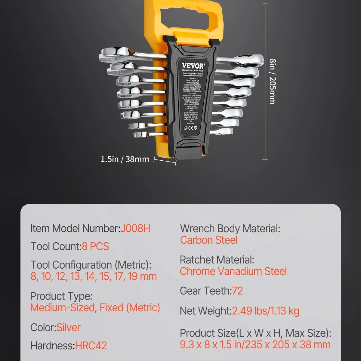 ·Durable and Sturdy: The ratchets of our combination wrench set are forged from high-quality chrome vanadium steel (Cr-V) and heat-treated for maximum strength. The special coating on the wrench body enhances the erosion-resistant, making the tool solid, wear-resistant, and long-lasting.