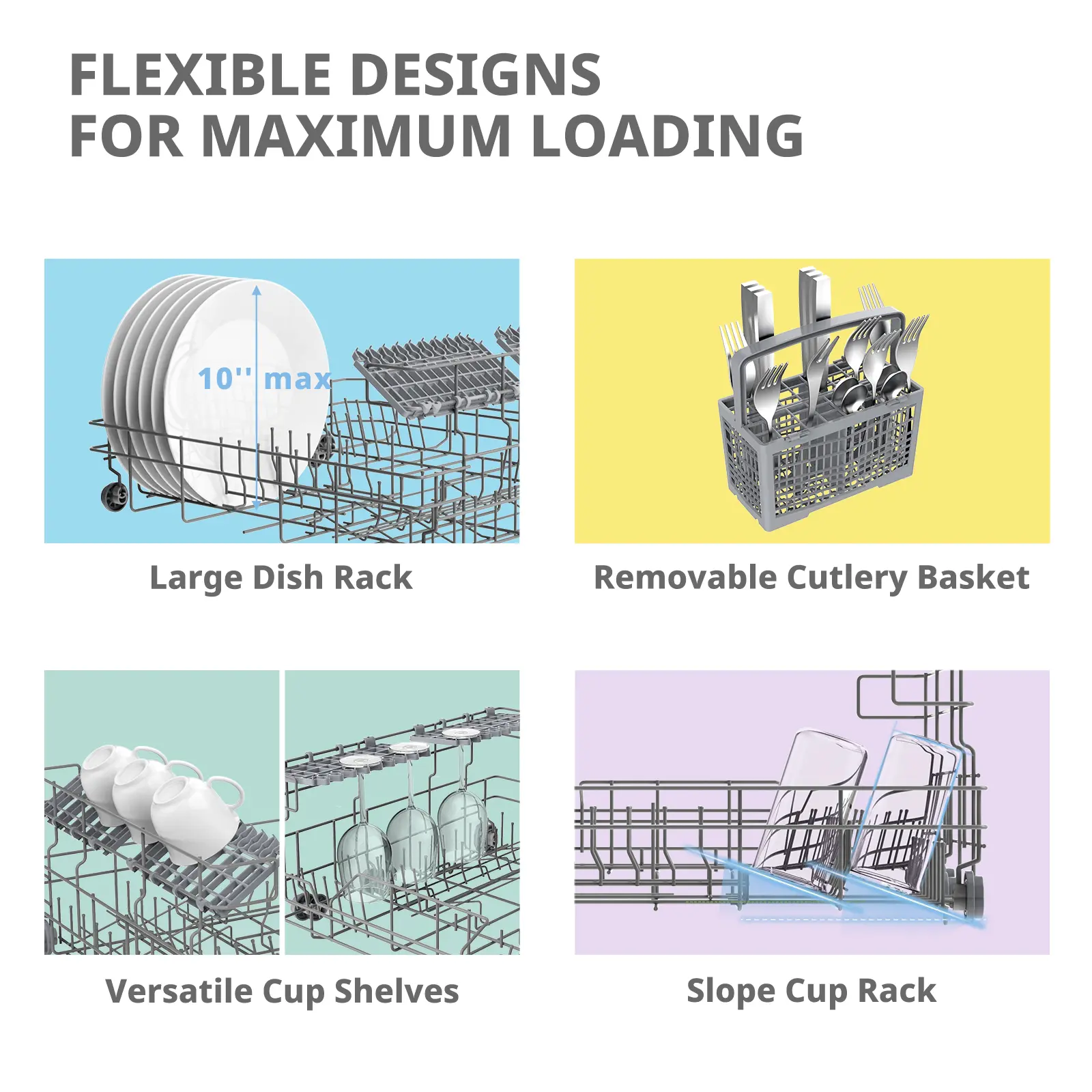 ·Speed Program- Only takes you 45 minutes to get all dishes cleaned, perfect for hurry-up situations, like holding a multi-round party. Accompanied with Energy Star compliant, water consumption can be as low as 2.77 gallons of water, which greatly saves your costs.