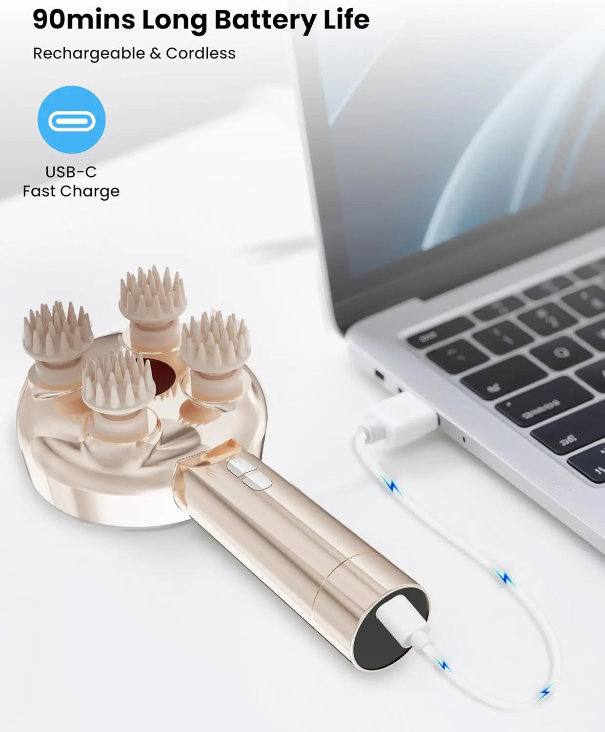 ·【IPX7 Waterproof & Wireless Convenience】Designed for complete freedom, this waterproof head scratcher works perfectly in showers or baths with no risk of damage. With 90 minutes of cordless operation and USB-C fast charging, you're always ready for instant relaxation. Whether at home, work, or traveling, enjoy spa-quality relief without being tethered to an outlet.