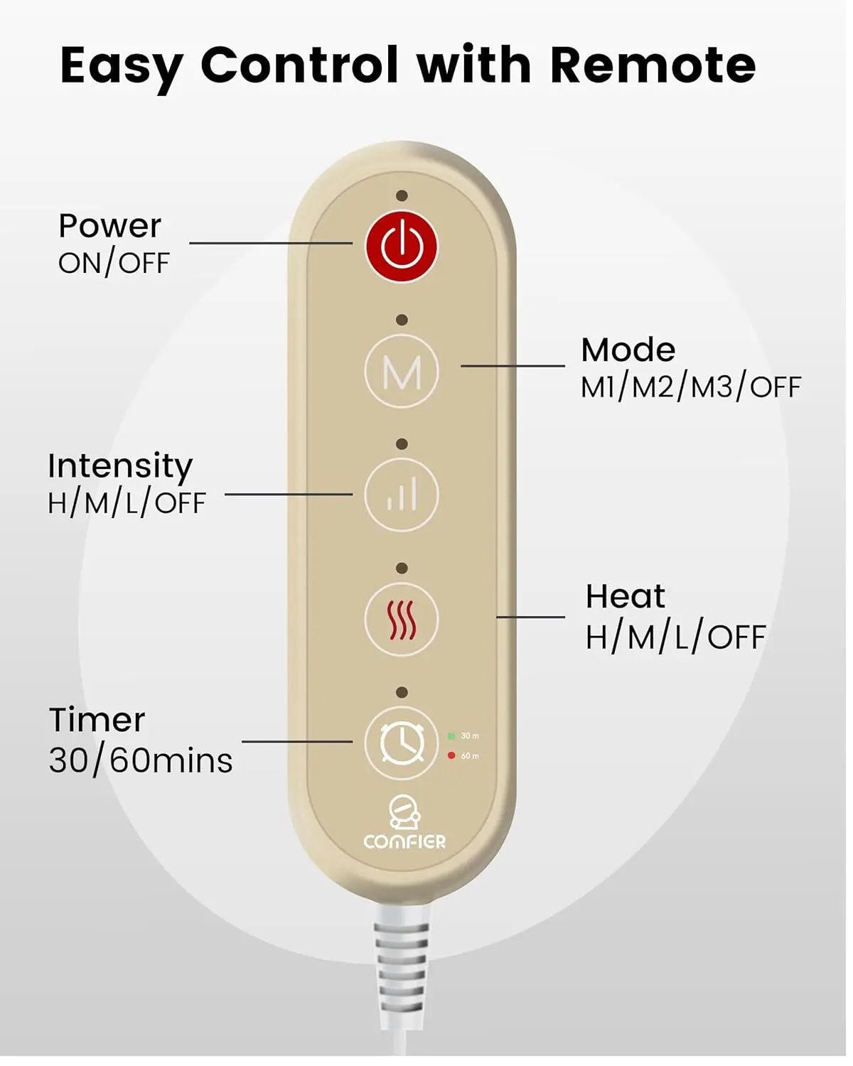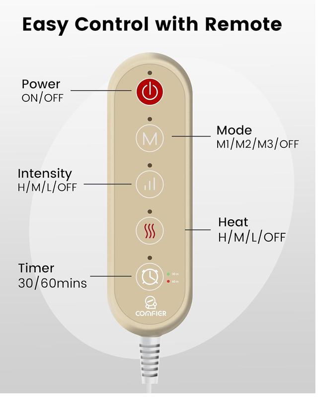 ·Heating Pad for Back with Massager Smart Timer & Precise Temperature Control: The COMFIER wearable heating pad features a convenient timer function, defaulting to 30 minutes with options for 30 or 60 minutes, so you never have to worry about forgetting to turn it off. Equipped with NTC precise temperature control, it maintains ideal warmth levels, ensuring consistent comfort and peace of mind with every use.