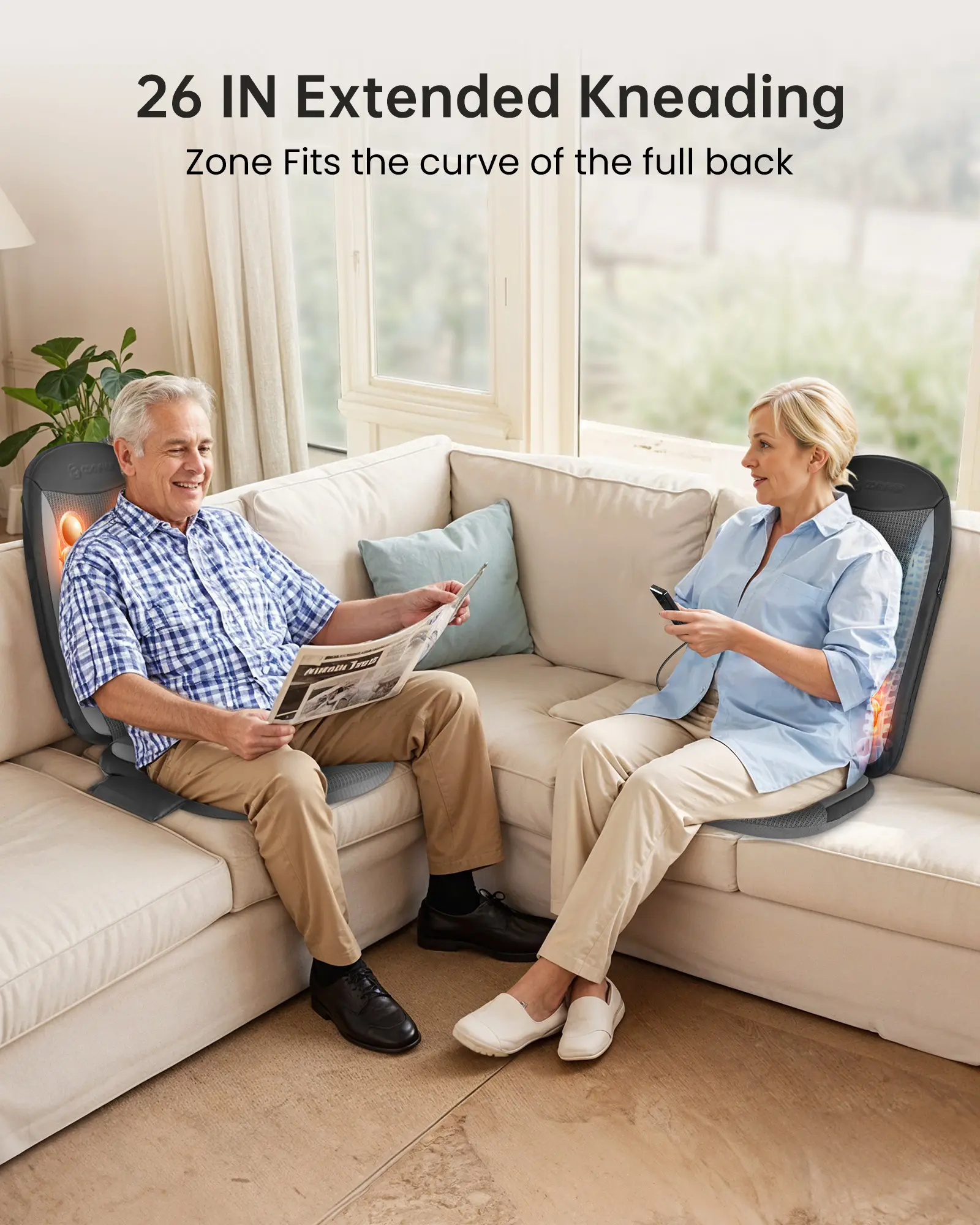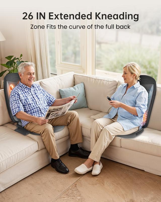 ·Deep Tissue Shiatsu & Kneading Massage – Full-Back Relief: Experience the power of 4 deep-kneading massage nodes that glide up and down your back, covering an extended 26-inch area. Comfier shiatsu back massager is expertly designed to follow the natural curve of your spine, easing muscle stiffness and tension with professional-grade pressure—perfect for daily use after long hours of sitting or working.