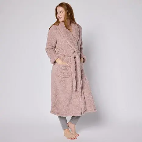Comfort Code Brushed Ultra Knit Belted Robe Unwind on quiet mornings or settle in for evening relaxation with this plush sherpa knit robe, designed with a gentle pop of coverstitch detail and a flattering semi-fitted shape. The crossover V-neck and long sleeves add warmth, while the sewn-in belt and handy front pockets keep comfort close at hand whether you're enjoying a cup of tea or lounging on the couch.