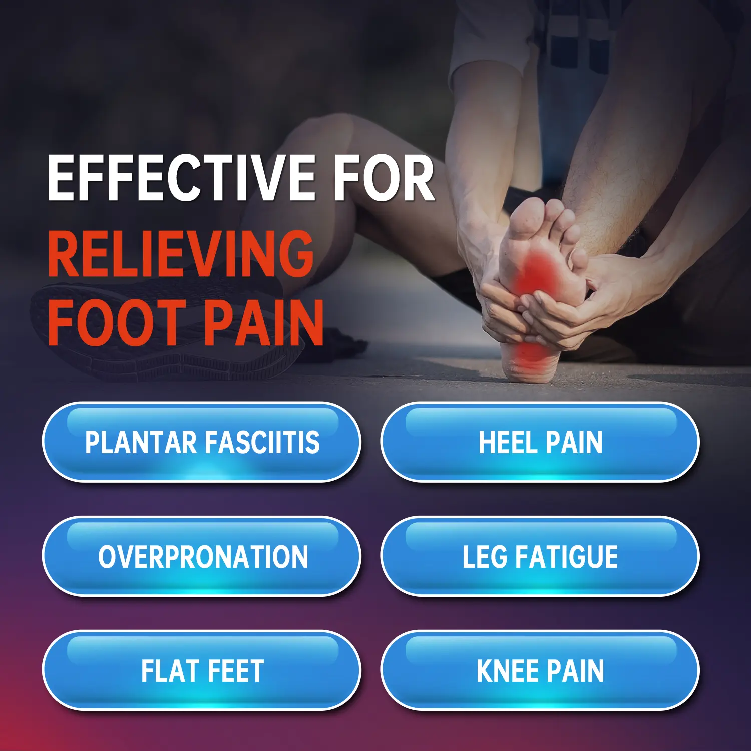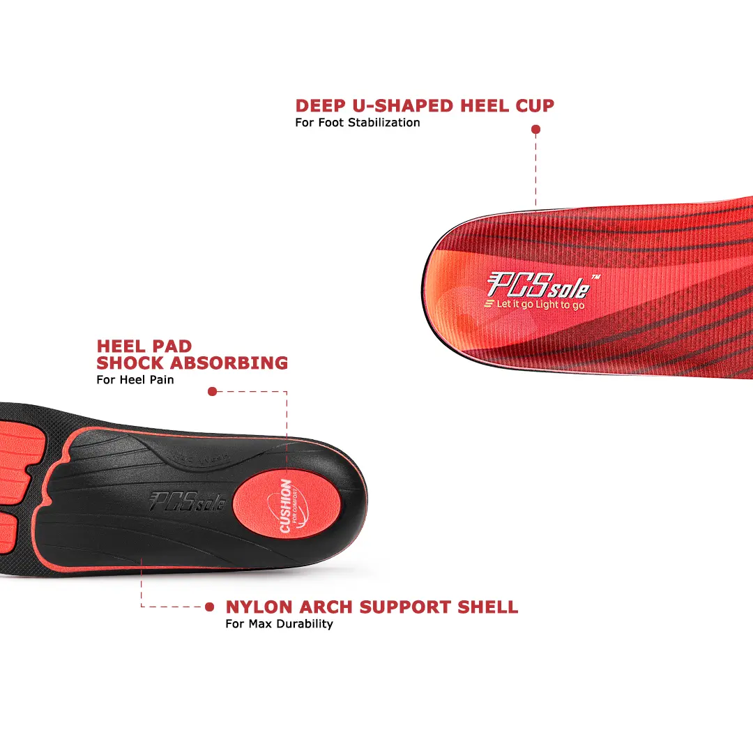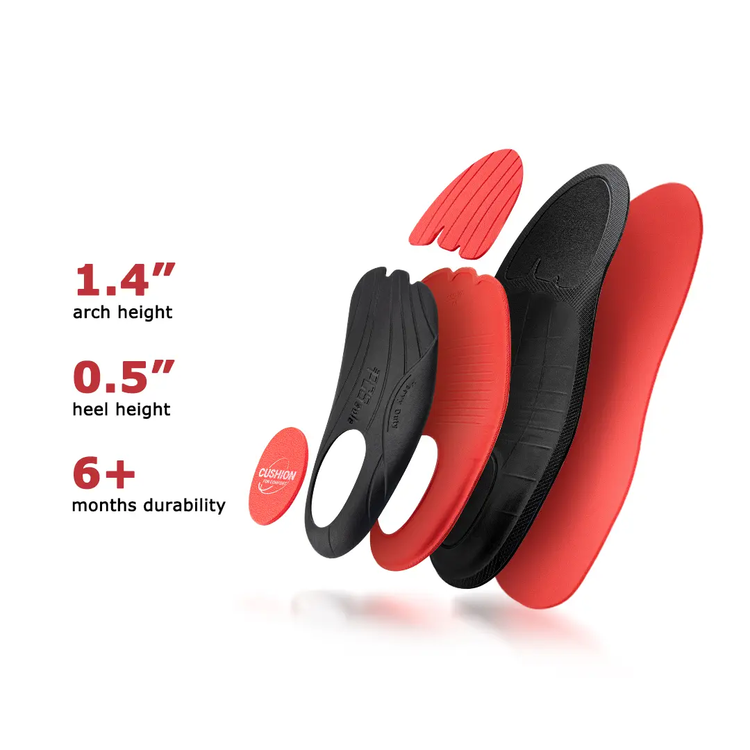 ·FITS MOST TYPES OF SHOES: Orthotic shoe inserts can be used in work boots, casual shoes, hiking shoes, sneakers, skates, tennis shoes, and more. No matter your footwear of choice, our foot support inserts can help relieve your pain from flat feet and plantar fasciitis.