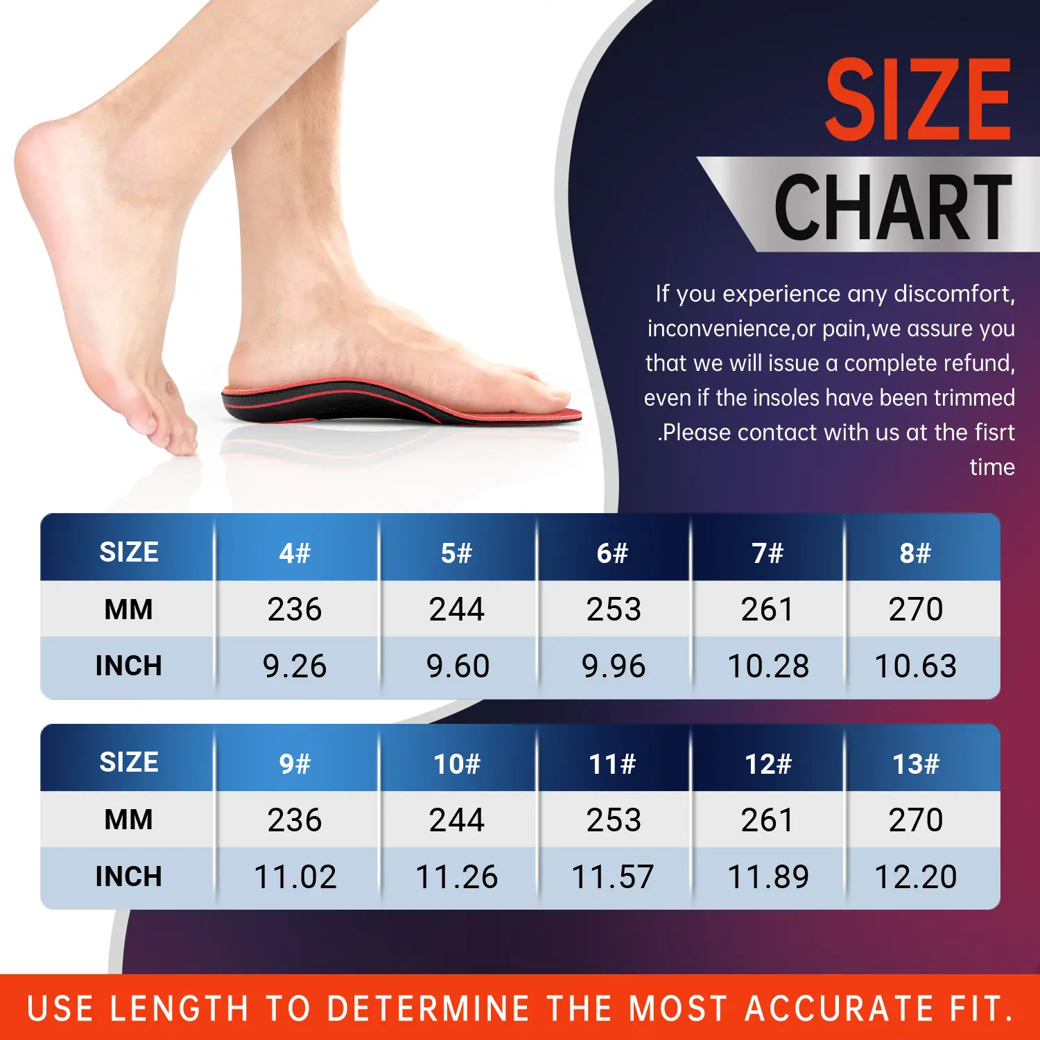 ·100% RISK-FREE PURCHASE & PROMISE SERVICE: You can make your purchase with confidence, as we provide a 1-YEAR warranty and a 90-DAY refund or replacement option, even for trimmed insoles. If you come across a damaged item, please don't hesitate to get in touch with us, and we will strive to offer you a reasonable and acceptable solution.
