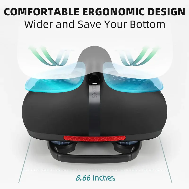 ·Exceptional Shock Absorption: Tackle rugged terrains effortlessly. Our silicone gel cushion boasts remarkable shock-absorbing properties, effectively minimizing the impact of bumps and uneven surfaces for a smoother ride.