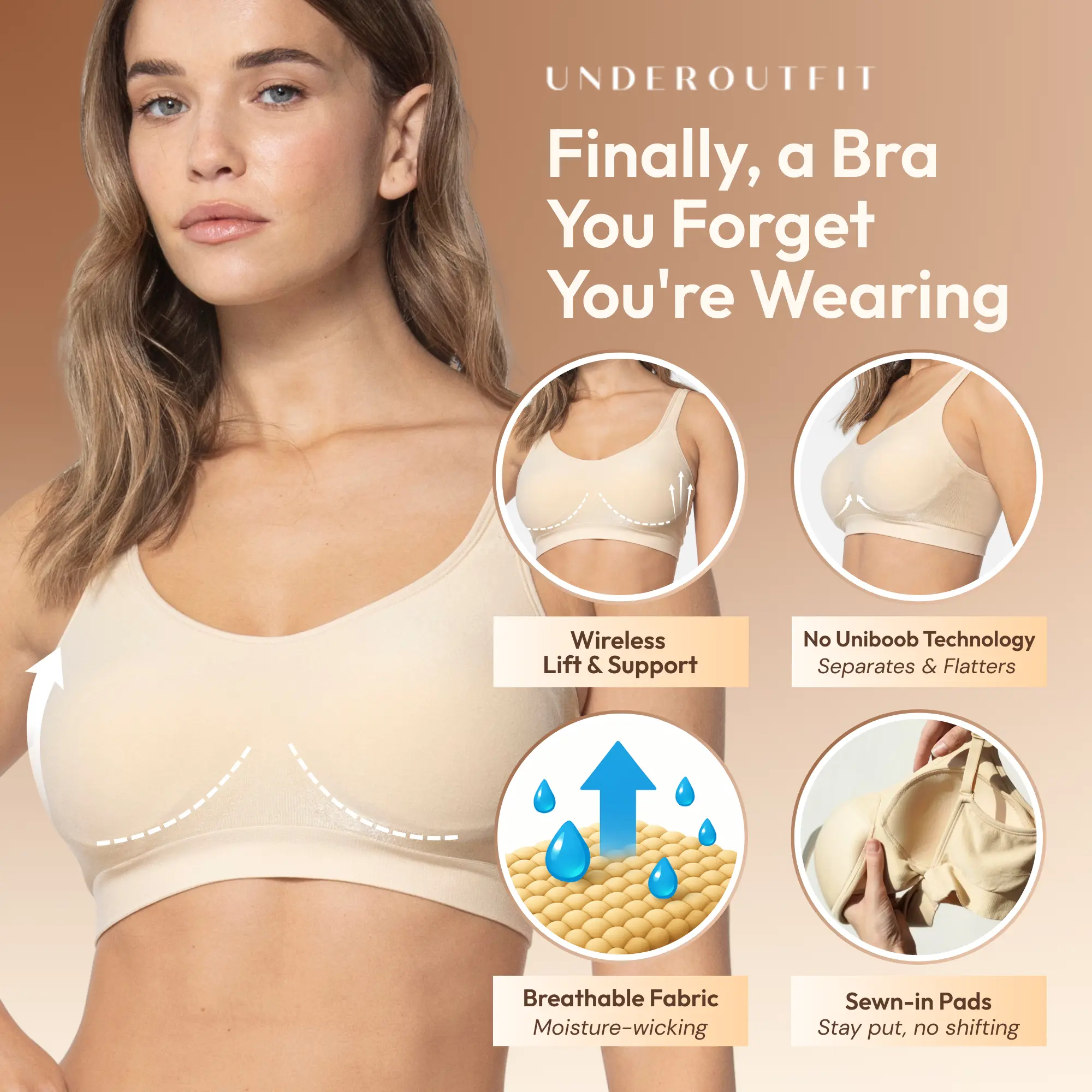 This bra from Underoutfit is a game changer for me! It’s awesome how it fits me and feels so comfortable. I watched the Underoutfit ads on social media and was very skeptical but decided to try one (the return policy is amazingly long-this bra isn’t going back!!)