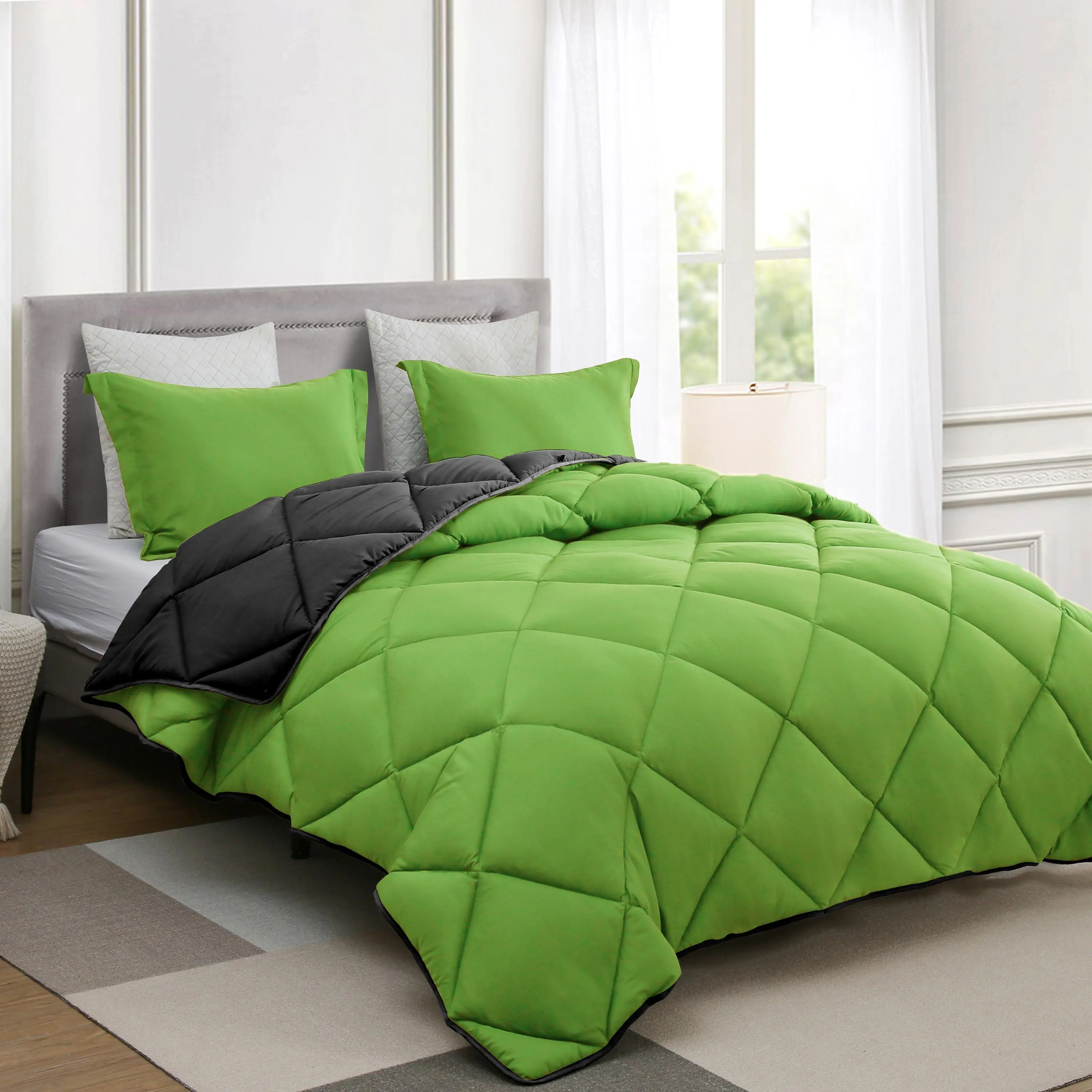 Elevate your bedding with this innovative comforter set. It features as 450-filled , perfect for all seasons. The chemical fiber core ensures medium isothermal comfort, replacing traditional quilts. This versatile piece adapts to any room's needs.