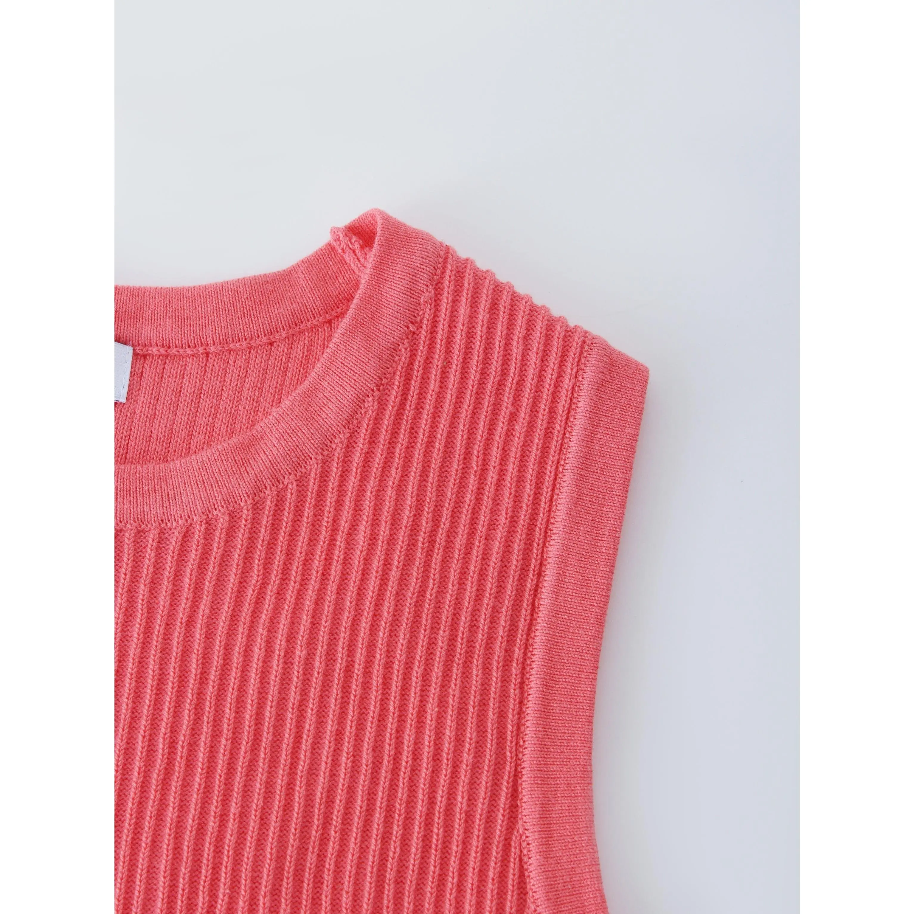 This Sleeveless Ribbed Crew in Blue is a comfortable and stylish addition to any wardrobe. Pair it with our matching cardigan for a beautiful ensemble.