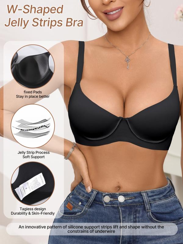 5. 2 Pack Comfortable Jelly Bra with Adjustable Straps, Medium Support Push Up Bra for Women, Everyday Wear Lingerie