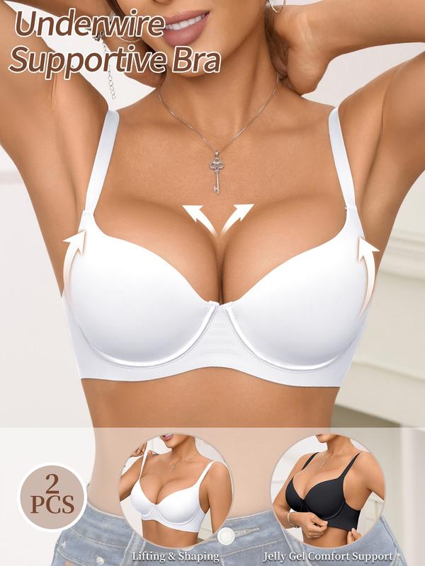 2 Pack Comfortable Jelly Bra with Adjustable Straps, Medium Support Push Up Bra for Women, Everyday Wear Lingerie