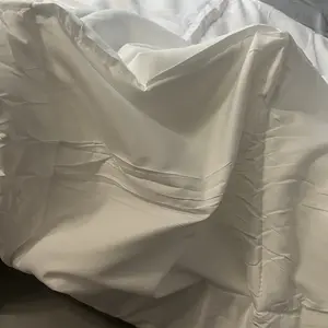Lightweight soft material and fits king size pretty well, I bought a white king size, was hoping it was bigger but it works. Has a yellow stain and some frayed threads not sure if I will keep it or not, I don't like the stain. Good quality for the price.