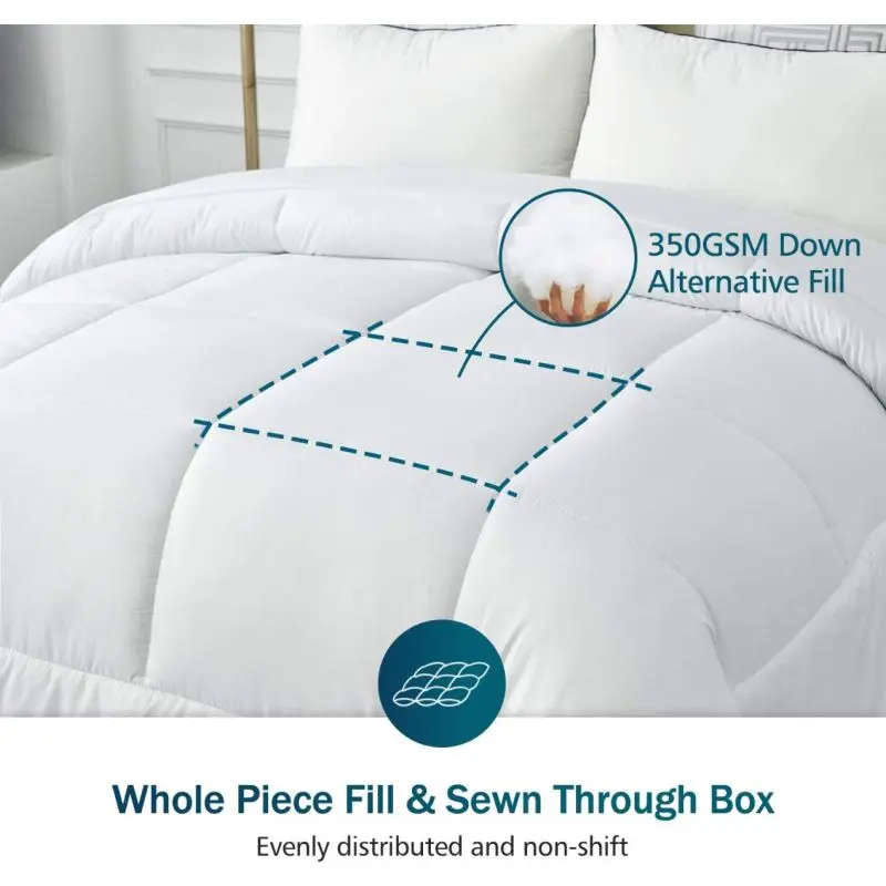 5. Cotton Rich Down Alternative Comforter/Duvet Insert, Wrinkle-Resistant, Soft & Cozy, King/Queen Size Puff Quilt