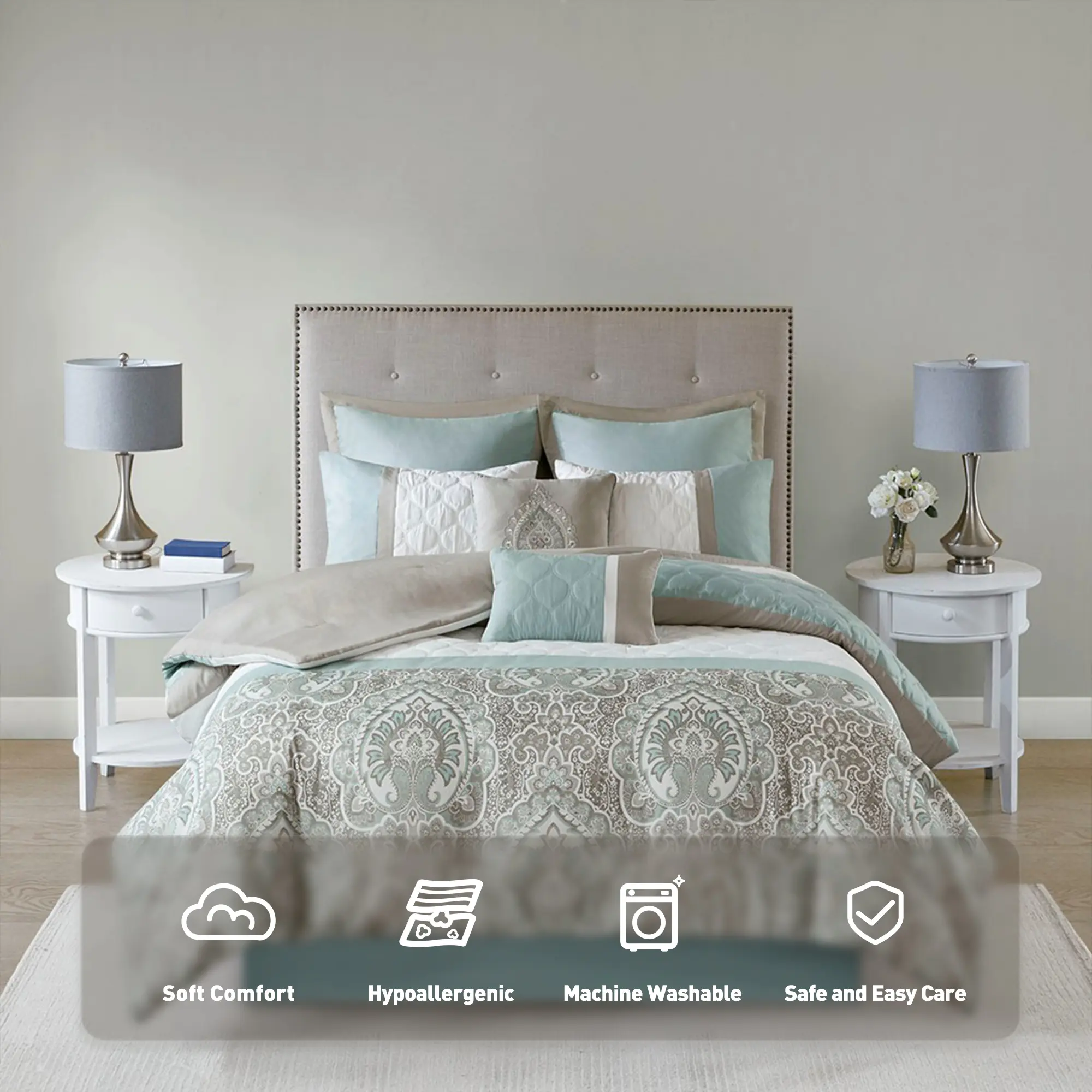 • Machine Washable and steam iron for wrinkle removal