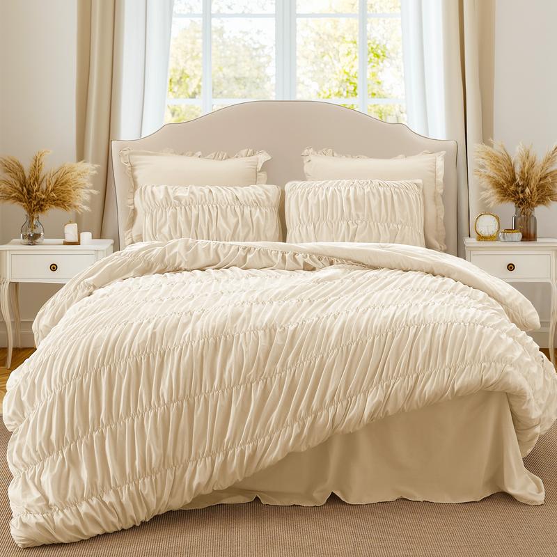 Inovaday 3 Pieces Comforter Set, Boho Fluffy Ruched Bedding Comforter Set with 2 Pillowcases, Soft Shabby Chic Ruffle Comfy Bed Set Luxury Bedding SetInovaday 3 Pieces Comforter Set, Boho Fluffy Ruched Bedding Comforter Set with 2 Pillowcases, Soft Shabby Chic Ruffle Comfy Bed Set Luxury Bedding SetInovaday 3 Pieces Comforter Set, Boho Fluffy Ruched Bedding Comforter Set with 2 Pillowcases, Soft Shabby Chic Ruffle Comfy Bed Set Luxury Bedding SetInovaday 3 Pieces Comforter Set, Boho Fluffy Ruched Bedding Comforter Set with 2 Pillowcases, Soft Shabby Chic Ruffle Comfy Bed Set Luxury Bedding SetInovaday 3 Pieces Comforter Set, Boho Fluffy Ruched Bedding Comforter Set with 2 Pillowcases, Soft Shabby Chic Ruffle Comfy Bed Set Luxury Bedding Set