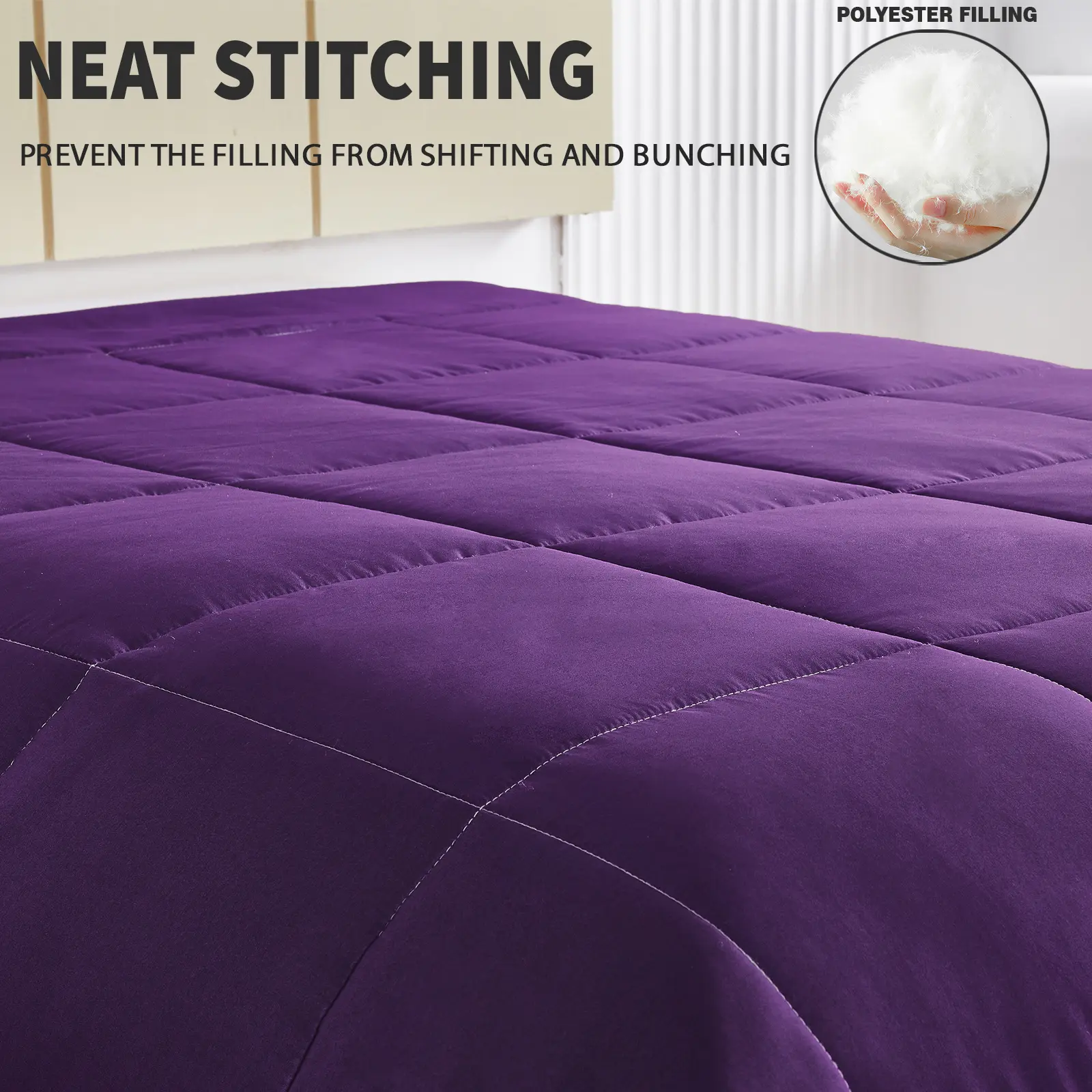 EXQUISITE STITCHING: Neat square stitching prevents the filling from shifting and clumping together in one area, keeps the shape of the comforter even after washing.