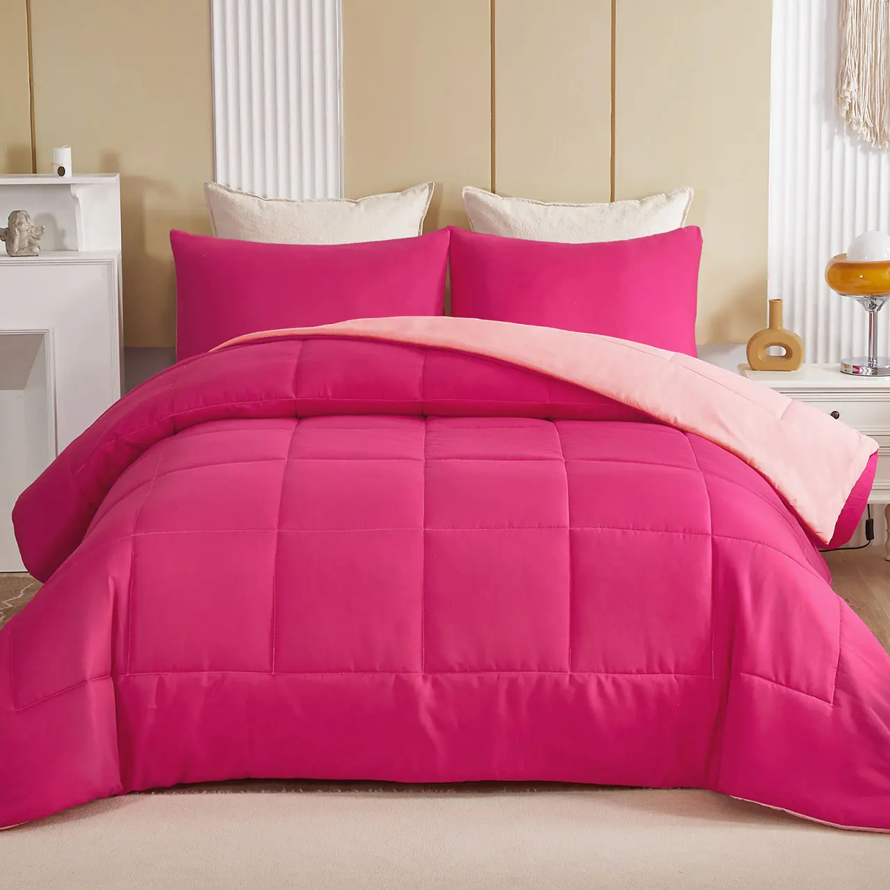 PERFECT HOME DECOR: The reversible comforter set features double-side design, top side is beige and back side is white. Such ingenious designed comforter would match your various bedroom decoration better and offer you an elegant and classic feeling. It is decorative that could be suitable for bedroom, kid’s room, guest room, RV and vocation room. It is also an ideal gift for your family and friends on Father's Day, Mother's Day, Birthday, Christmas, New Year or Back to School.