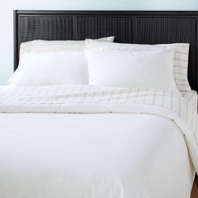 Bring warmth and elegant style to your master suite or guest bedroom with the Linen-Blend Comforter Set from Hearth & Hand with Magnolia. This solid-colored bedding set includes a soft-filled comforter in a neutral shade with a textured look. Also included are matching pillow sham(s) to complete your bedding ensemble in cohesive style. Made of a midweight linen-cotton blend fabric, this comforter set offers a chic update to your bedroom decor and is machine washable for easy upkeep.