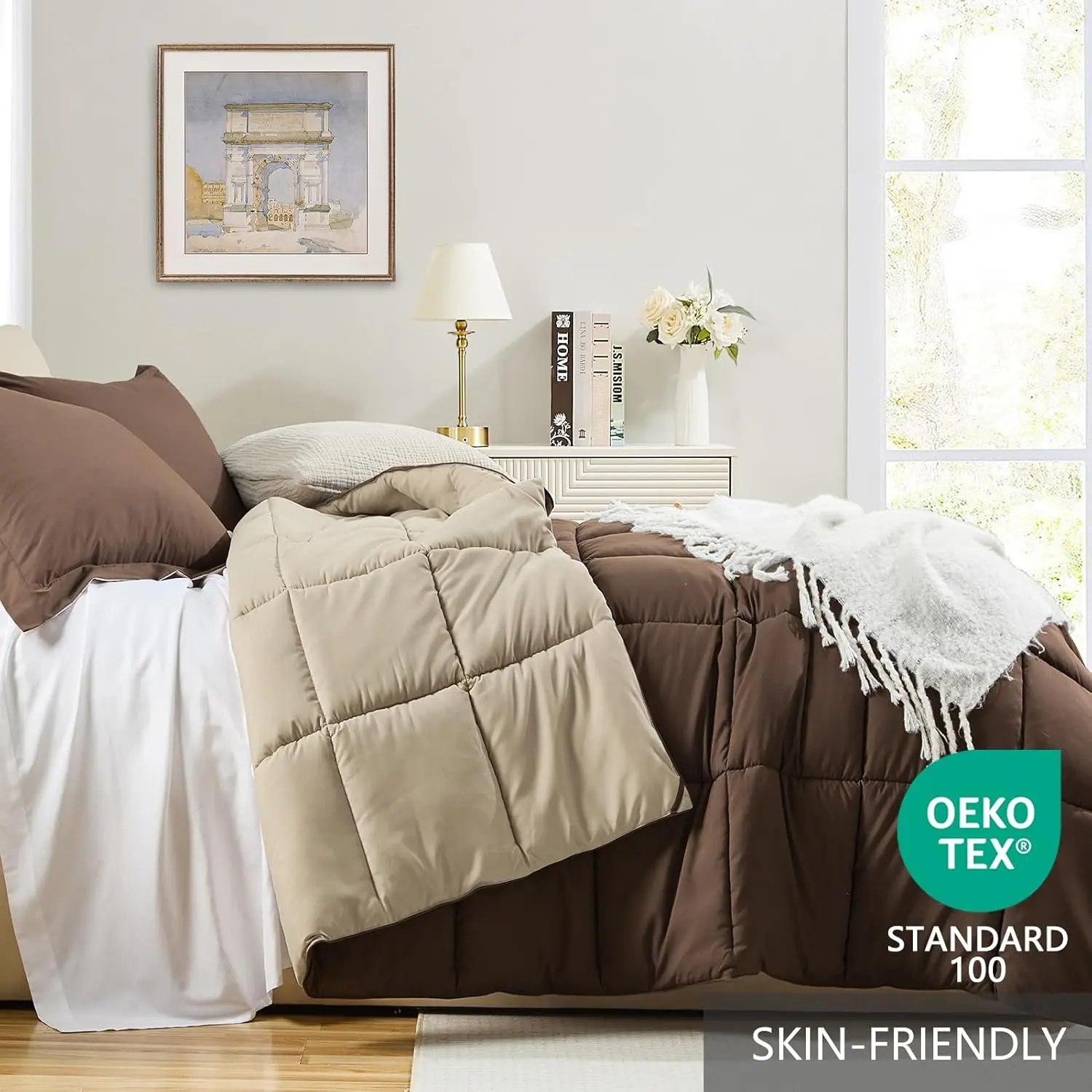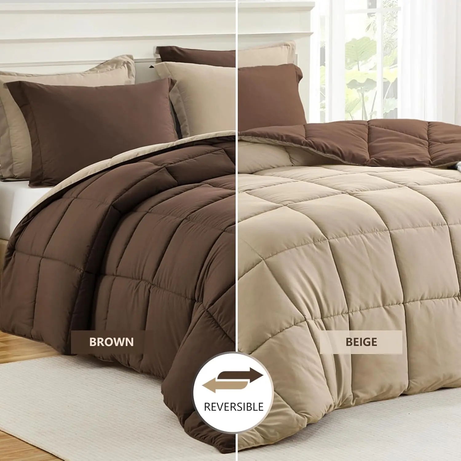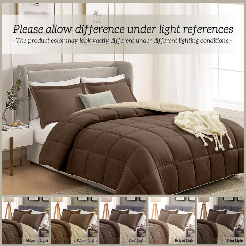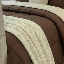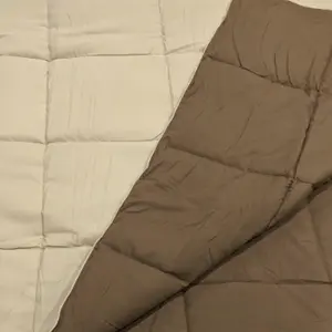 "The product comes vac-sealed and expands into a nice light, soft, fluffy, warm comforter. The color is nice and the stitching adds some simple elegance. The two-sided colors make it nice to have options.