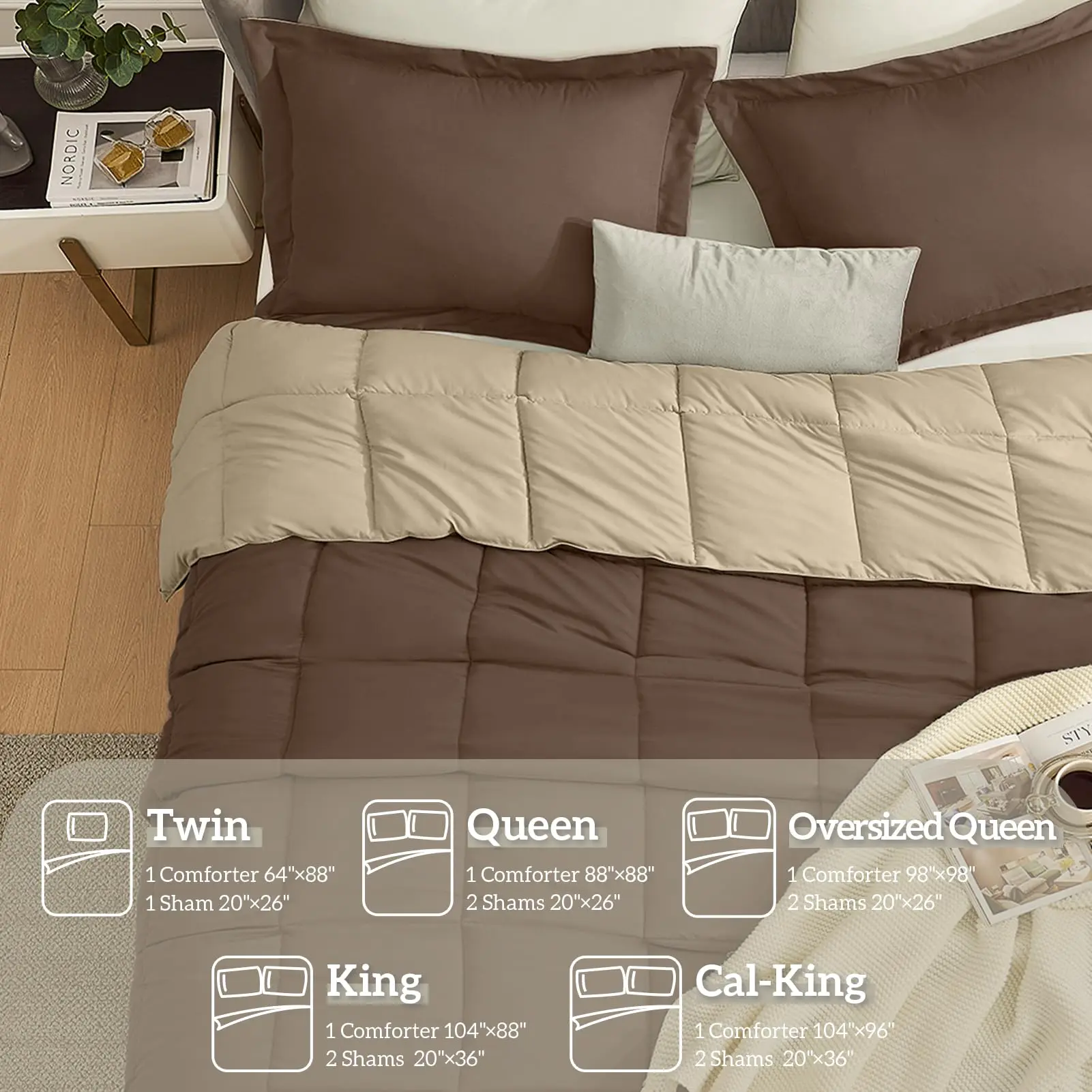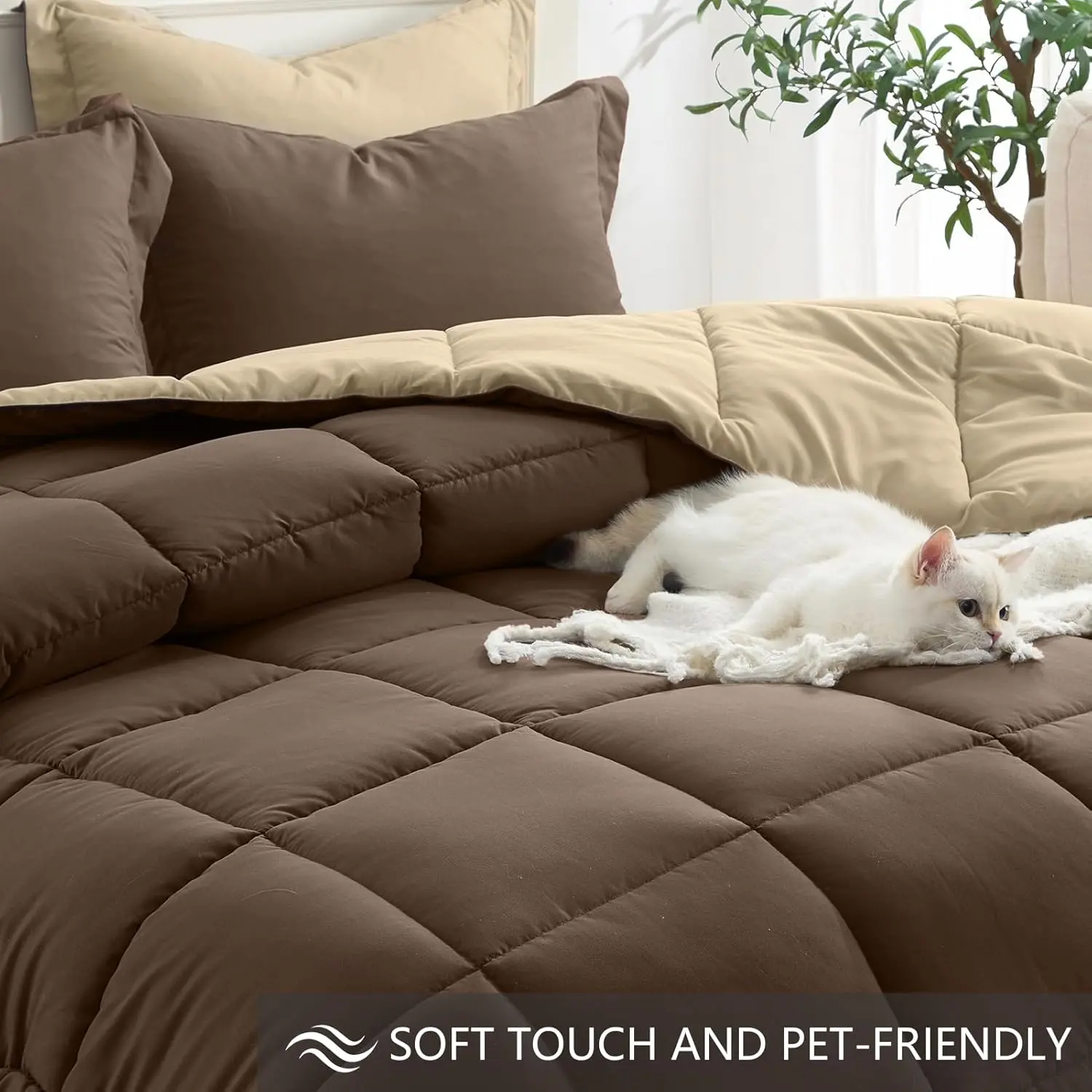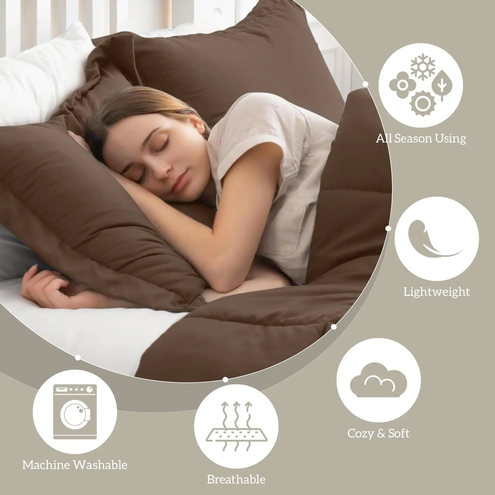 "The product comes vac-sealed and expands into a nice light, soft, fluffy, warm comforter. The color is nice and the stitching adds some simple elegance. The two-sided colors make it nice to have options.