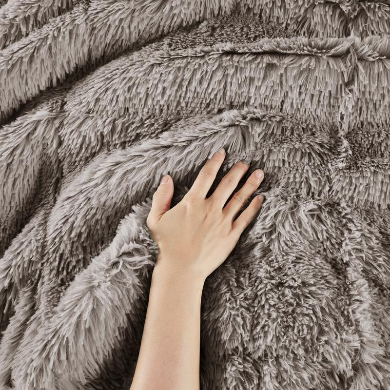 Very nice fluffy cover- the underside is very soft as well. Exactly as pictured/described. Doesn't feel tacky.