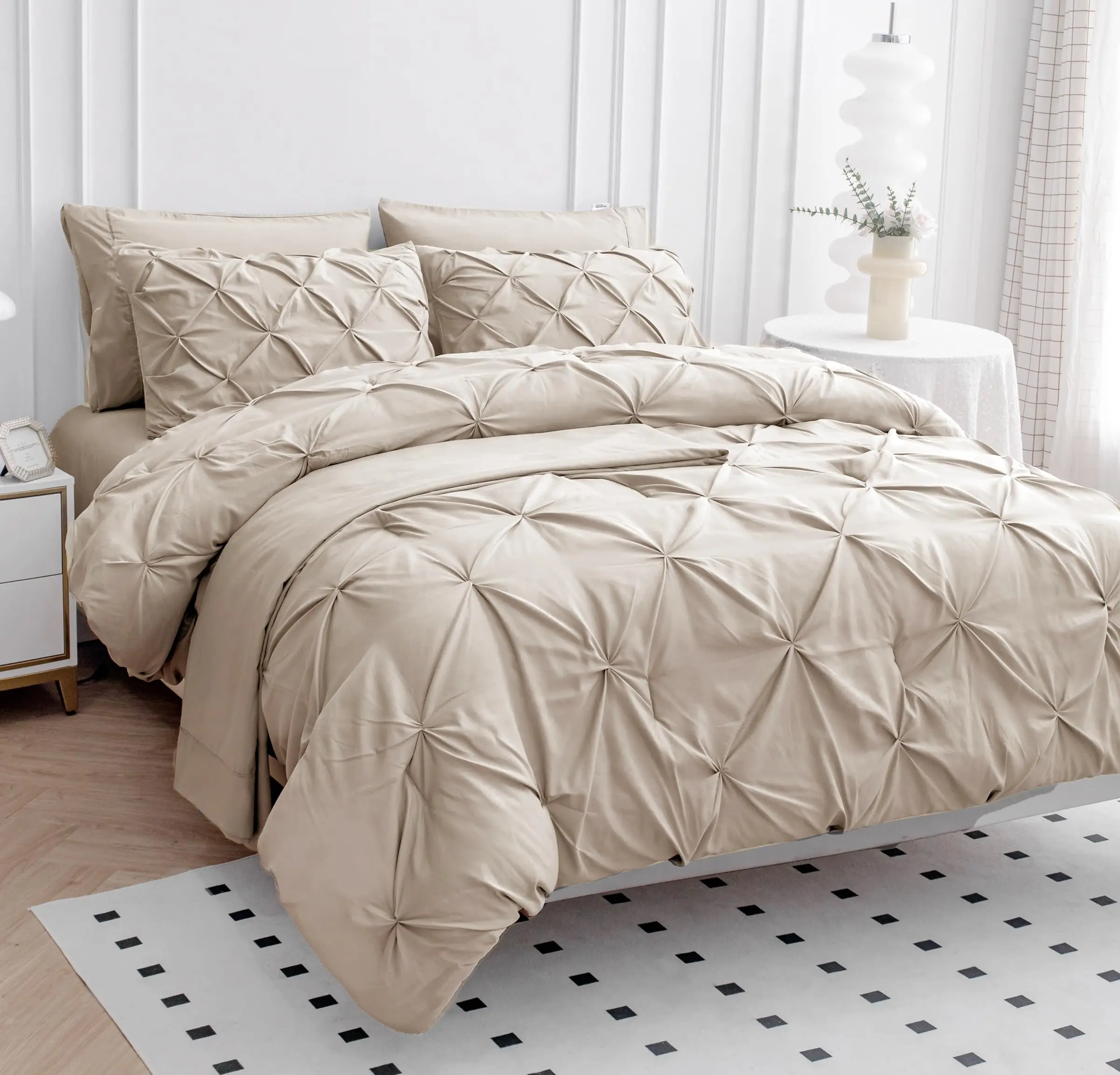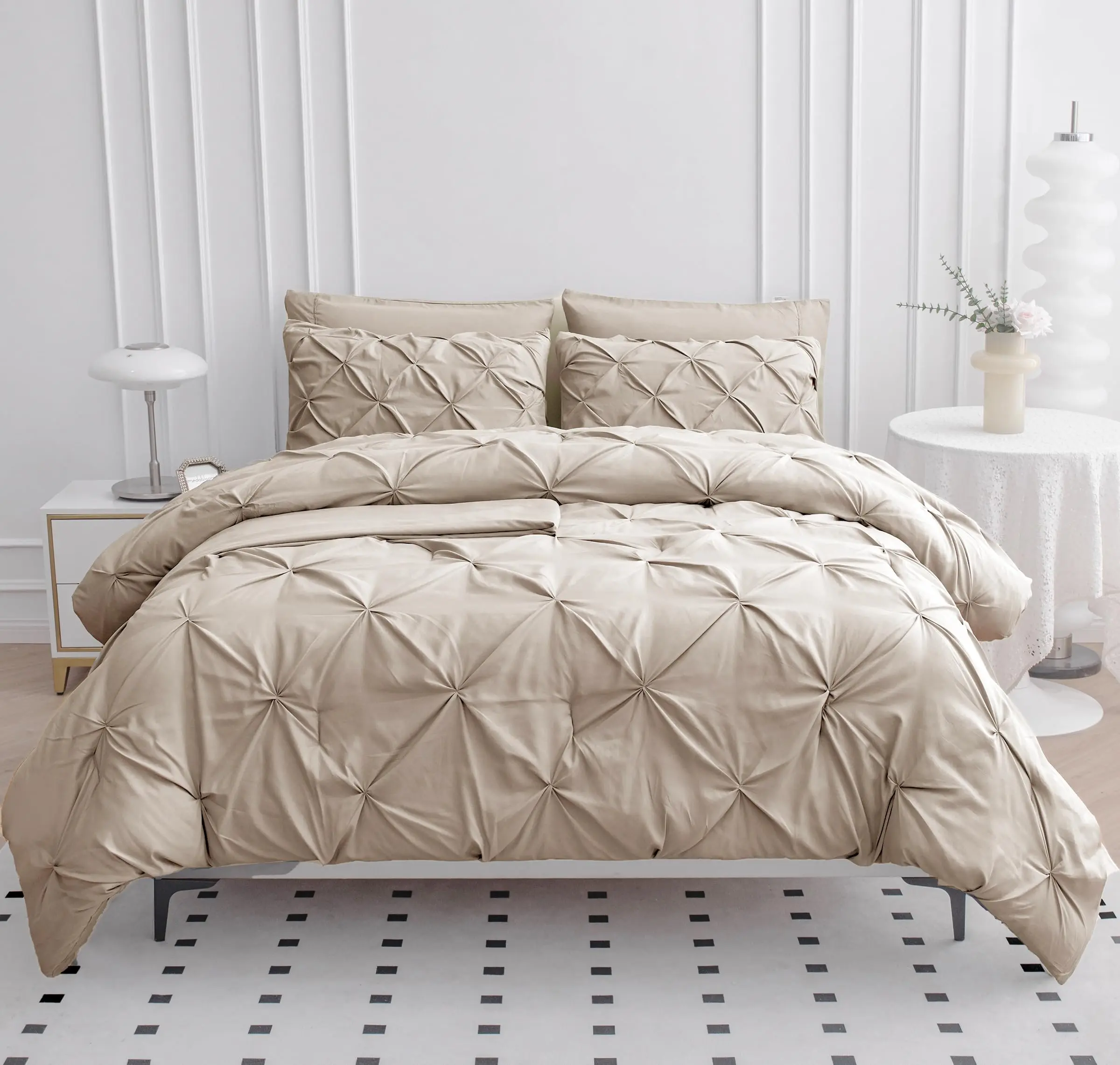 WHAT'S INCLUDED: Lane Linen offers a twin comforter set that combines pinch pleats and geometric patterns for a stylish and modern look. a sophisticated and elegant comforter set that will transform the bedroom into a chic retreat.