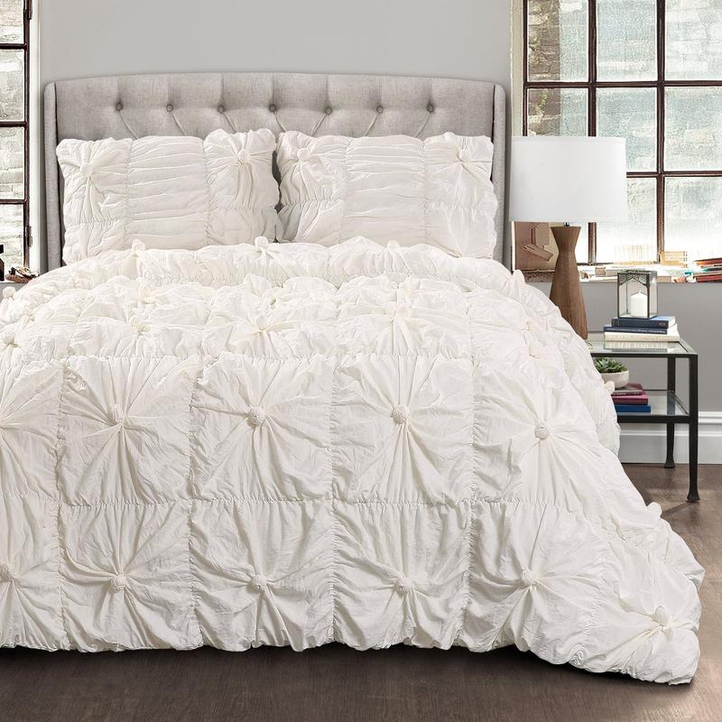 Our Bella 3 Piece Comforter Set offers a unique, romantic French look for your master or guest bedroom. Made from soft crinkle microfiber, this ruched set creates a glamorous look. Ideal for shabby chic, French, and cottage styles, it suits feminine and frilly decor. Perfect for primary, guest, teen, or child's rooms.