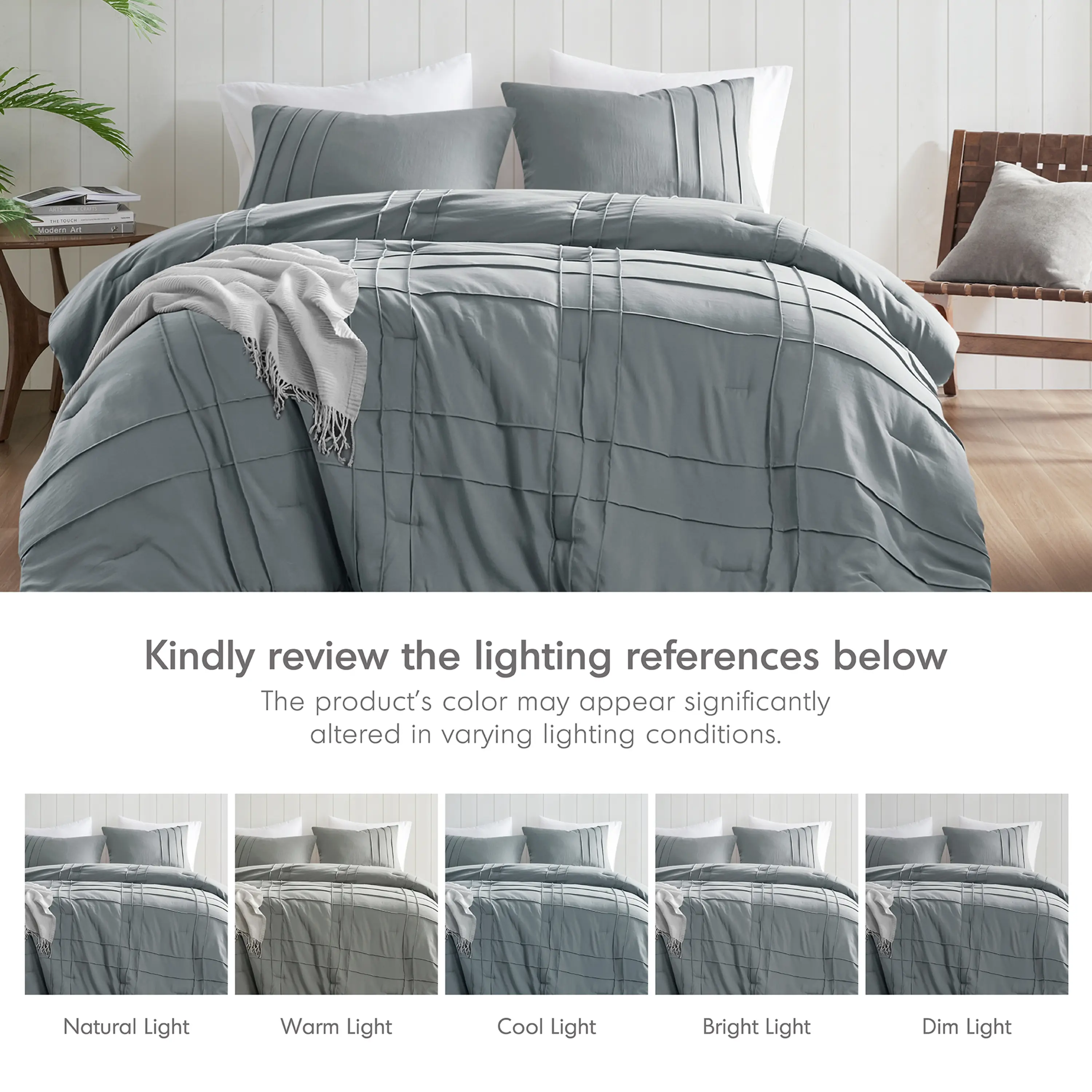 Thin enough for the hot sleeper in the summer, warm enough with an added blanket to use for cooler nights. Good material. I like the pinch pleat design and it is a good grey color. Not to light. Not too deep. Goes with alot of different color options Gender neutral