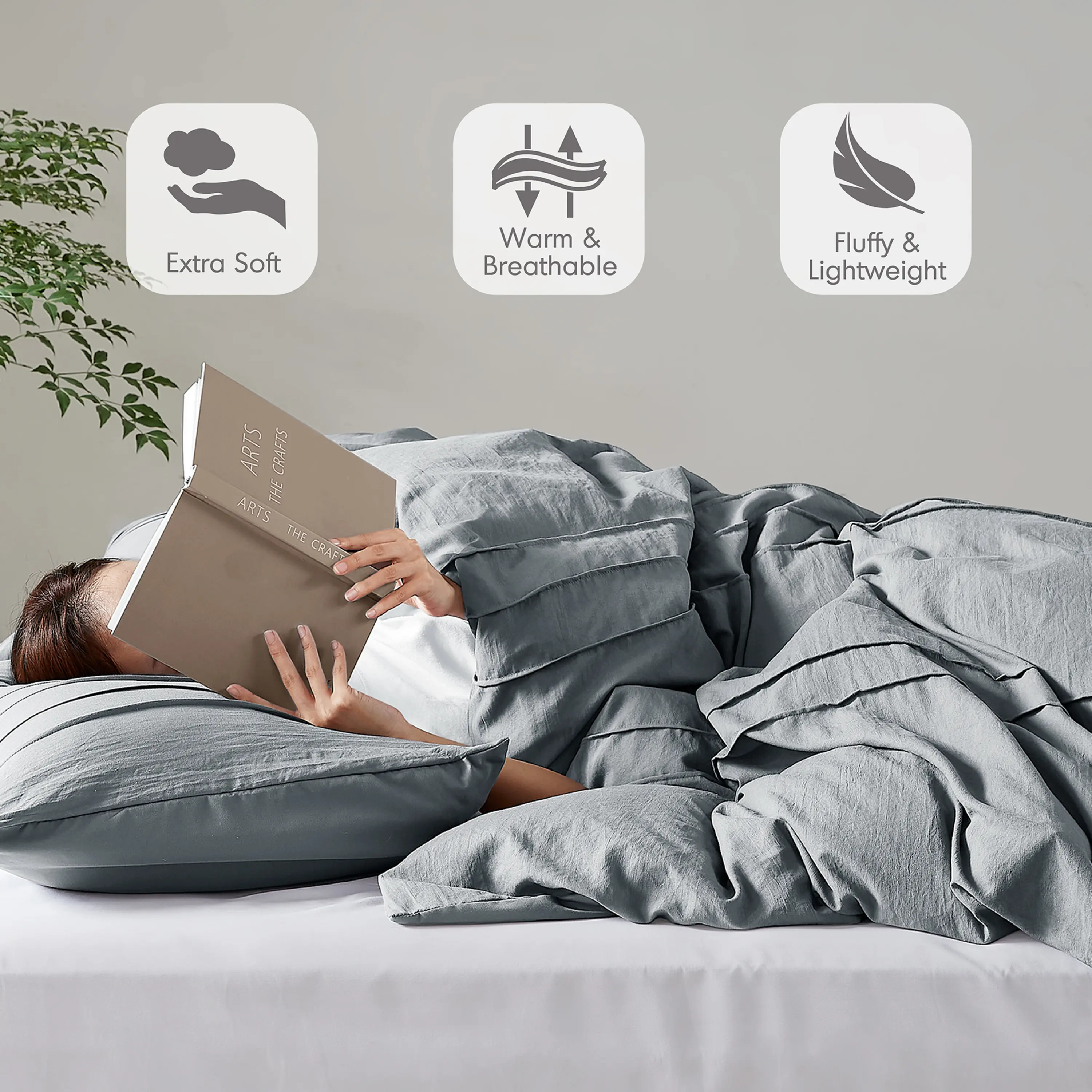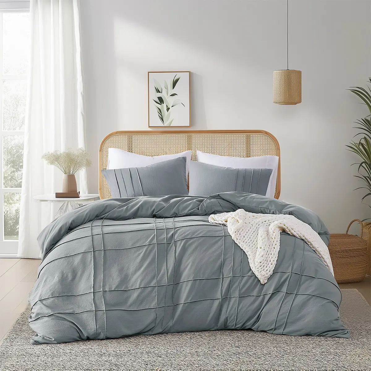 The set combines refined pinch pleats with a stylish grid pattern. Made from washed microfiber with pintuck pleats and solid microfiber reverse. The polyester filling ensures warmth. Machine washable for easy maintenance. Oeko-Tex certified for safety and gentle on skin. 🌿