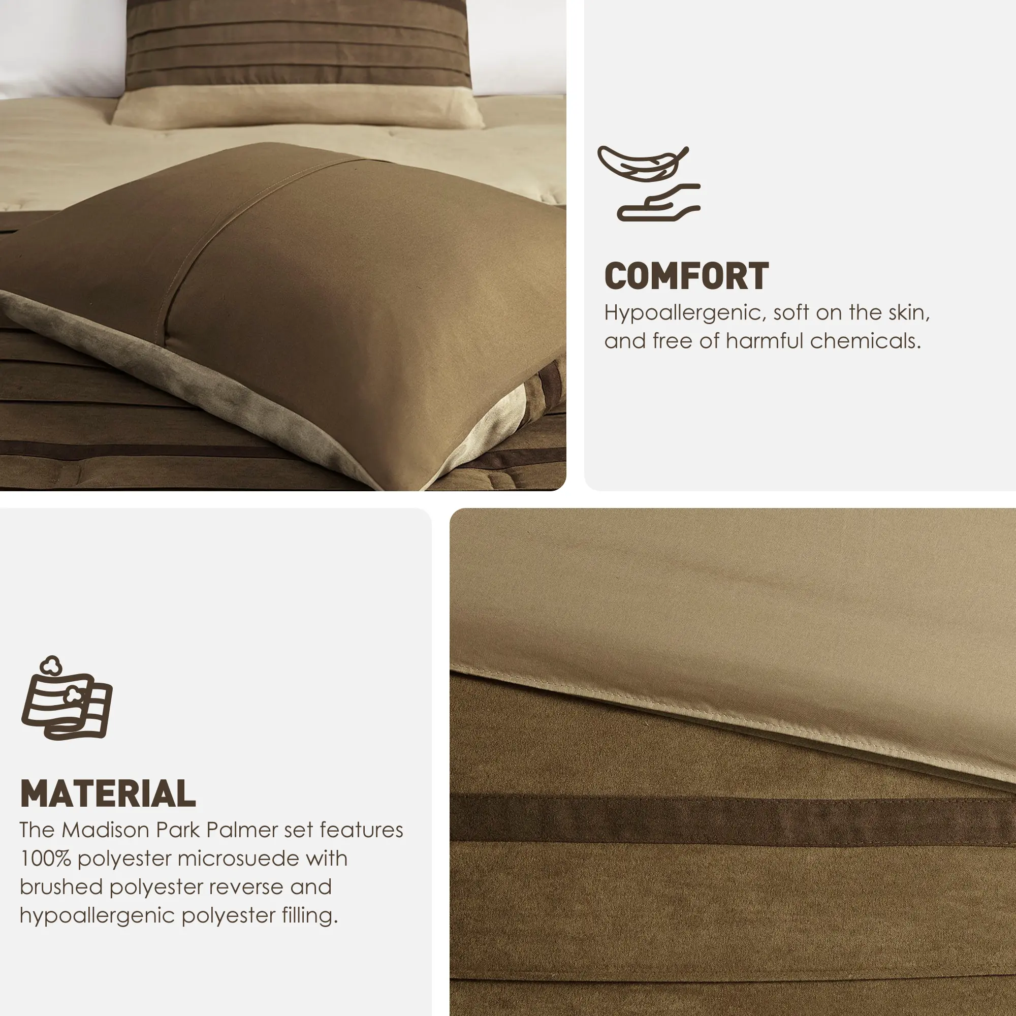 β’ Hypoallergenic polyester filling in the comforter and pillows