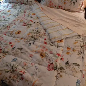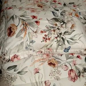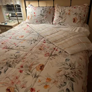 I love this comforter so much! The flowers look so cute and the quality is outstanding; not too thick and not too thin.