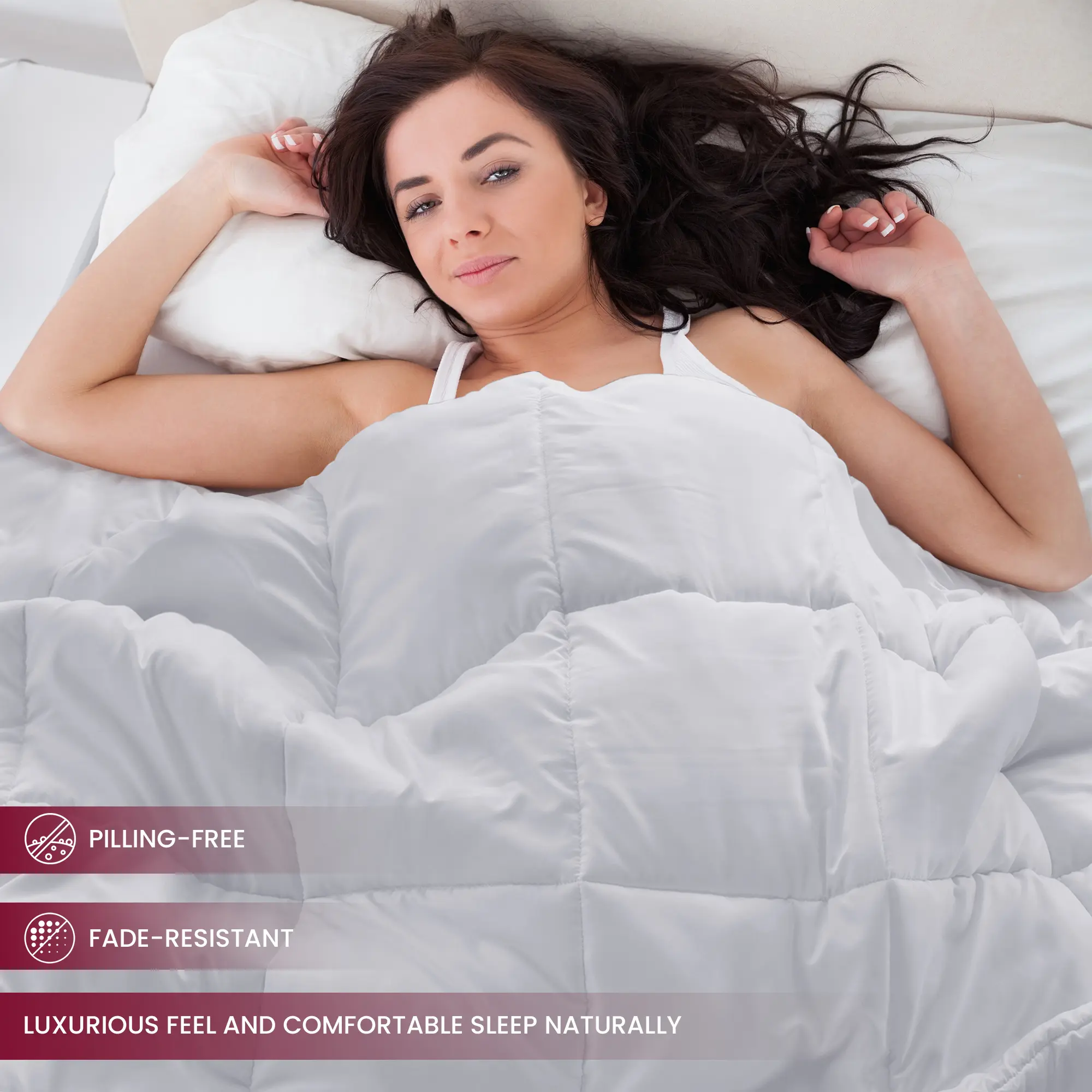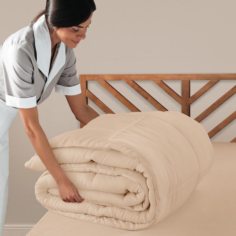 I'm so amazed on how fluffy this comforter is. It's fresh but also keeps you warm. I feel like if im on clouds. For the price it's definitely a steal. My bed is a Queen but I order a King and fits perfect. I Just ordered 2 more for my son and mom they loved it.