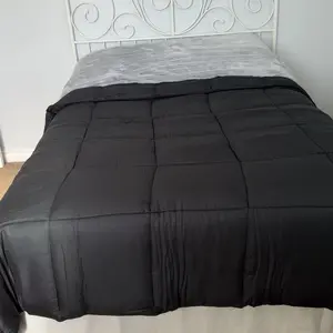 I like this comforter, but it didn't come in the exact gray color as specified. The one I received is a much lighter gray than the one in the picture. I still like it, but would have very much preferred the darker color. Other than that, it is super soft and turned out pretty fluffy.