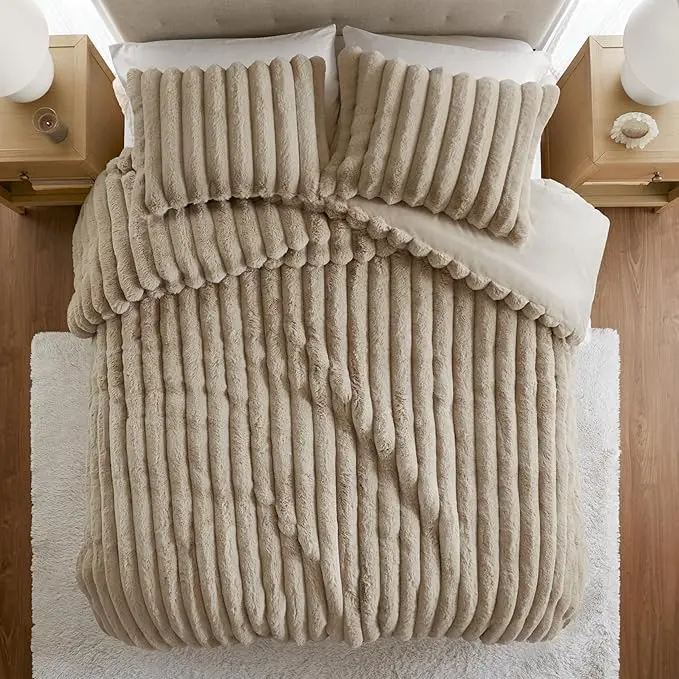 âš The Madison Park Ultrasoft Faux Fur Ribbed Comforter Set adds luxury to your bedroom. This set includes a reversible crystal velvet comforter and two matching pillows. Perfect for all seasons, it offers cozy comfort without compromising style. The premium 3-piece set ensures ultimate relaxation. đ