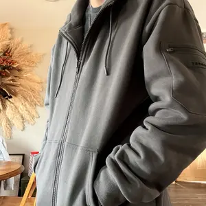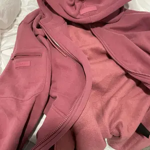 I LOVE this hoodie! It's so comfortable and has little zipper pockets everywhere. I love that. This hoodie is oversized which I love. Im 5'4 125lbs and I got a medium and its big. You could size down if you want a smaller fit. Love this hoodie and I got the matching sweatpants.