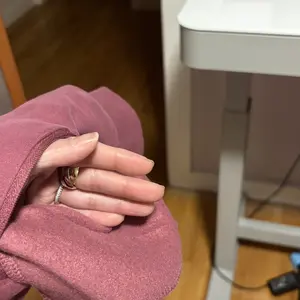 Very comfy the color is very pretty I would love to get in a Darker shade because I wear it a lot not sure if light color will stain if I spill on it but my one complaint is the one of the zippers doesn’t work for the pocket in back other that I love it’s weighted and thick but also breathable