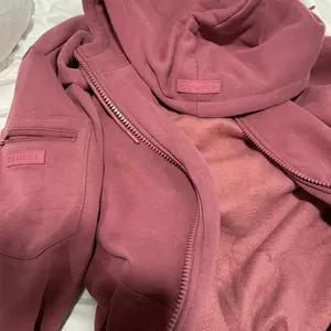 issue with the color of the logo. On the website photos, the “Comfrt” text on the front of the hood and on the side pocket is shown in black. However, the one I received is a berry color that blends into the hoodie, making it very difficult to see.