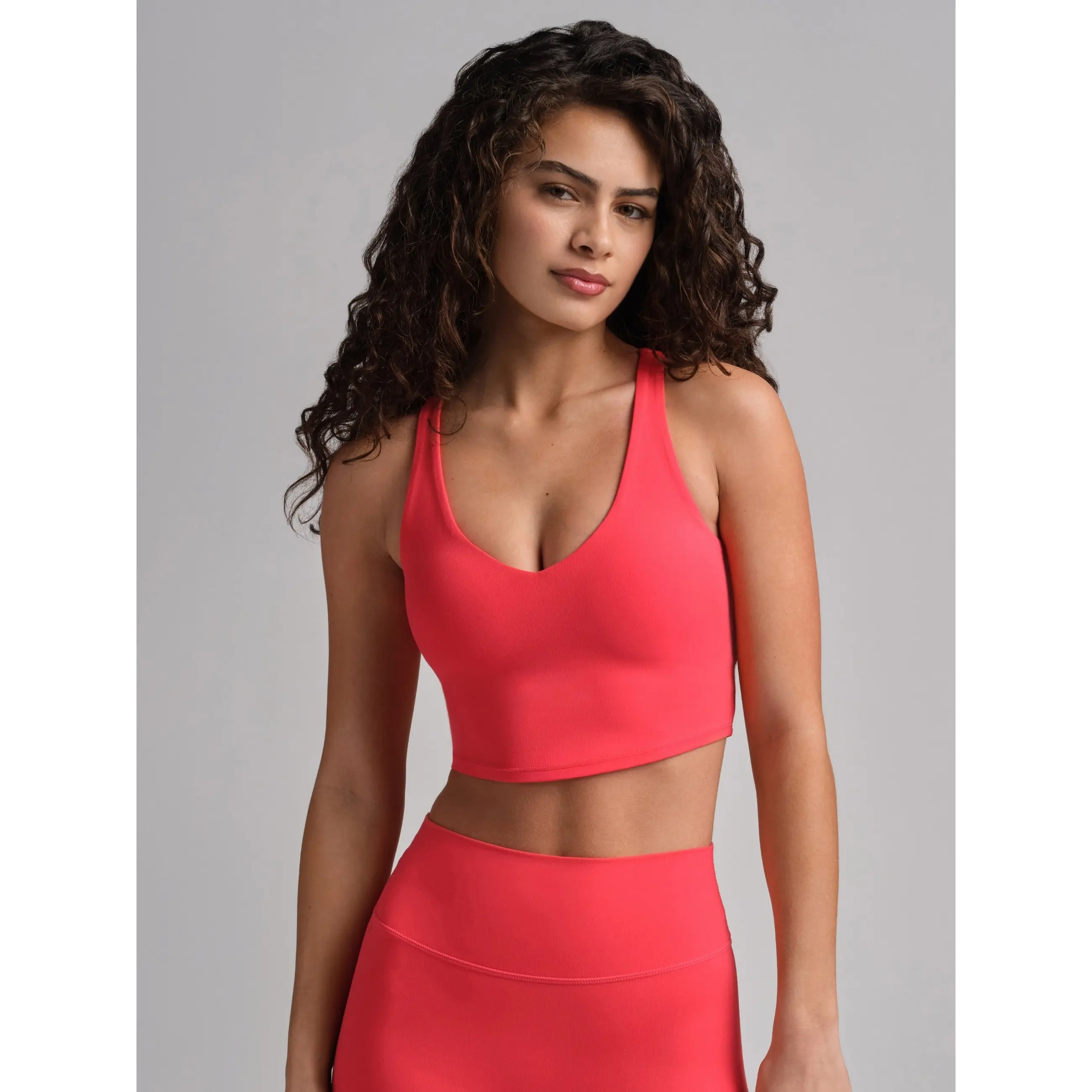 OBSESSED! The aqua color is so pretty and flattering, and the V-neck is perfect—not too low. Super soft, stretchy, and comfy for workouts or everyday wear. Cropped at just the right length. Great quality and washes well. 10/10 recommend.