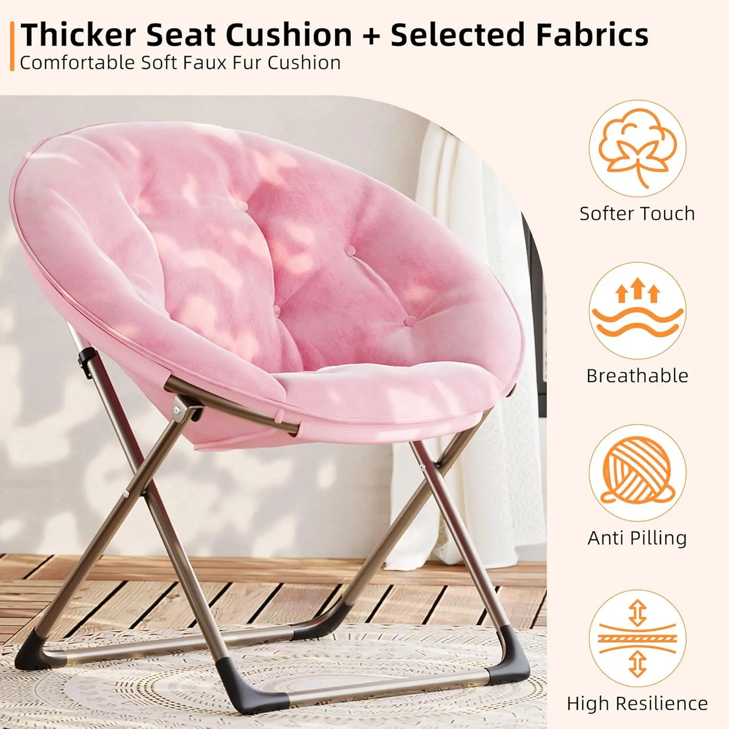 ·Sink into Plush Comfort: Covered in ultra-soft faux fur plush and generously thick padding, this saucer chairs for adults offers the perfect spot to unwind, read, watch movies, or simply take a cozy break. Enjoy the luxurious texture and cloud-like comfort, making it a favorite lounge chair indoor in any home