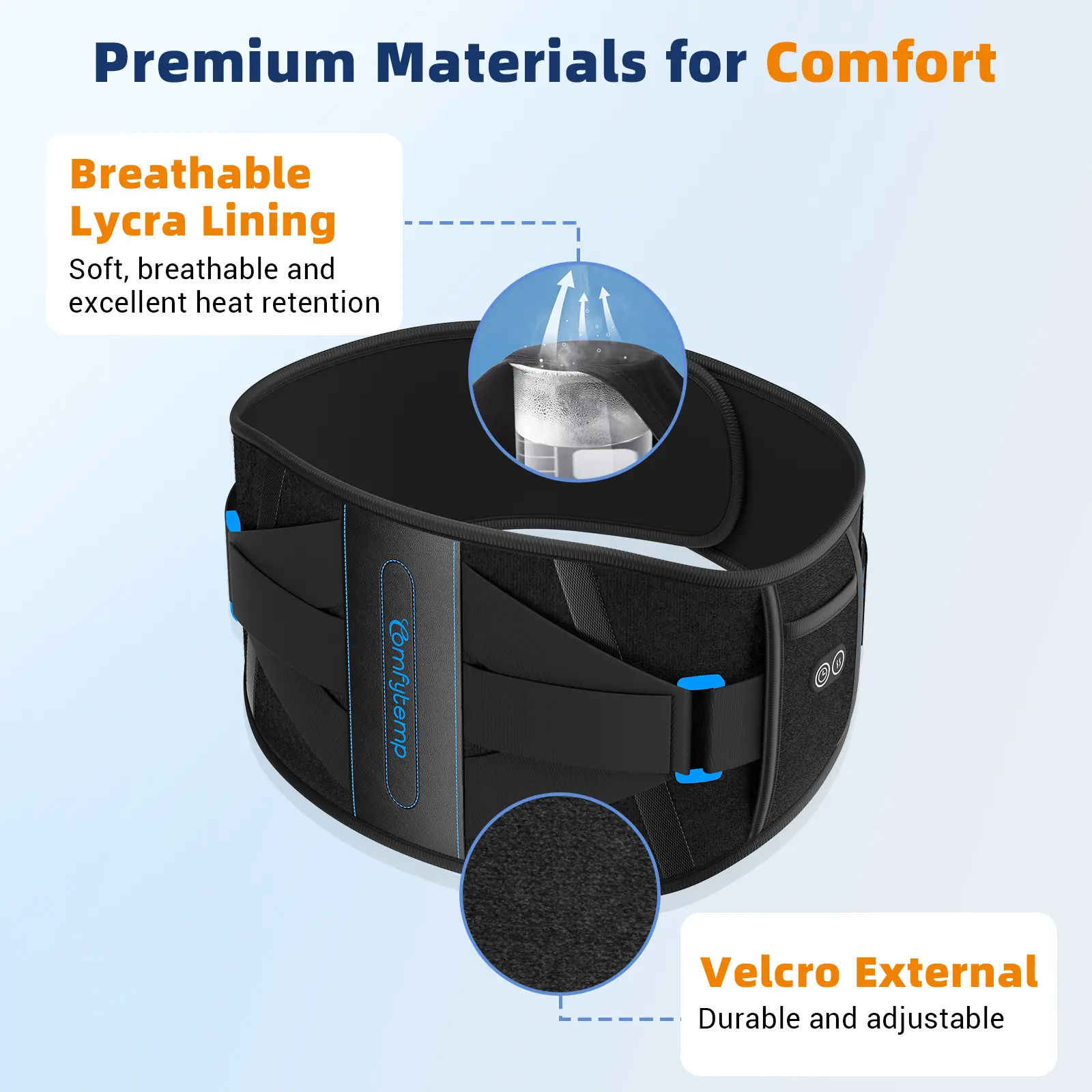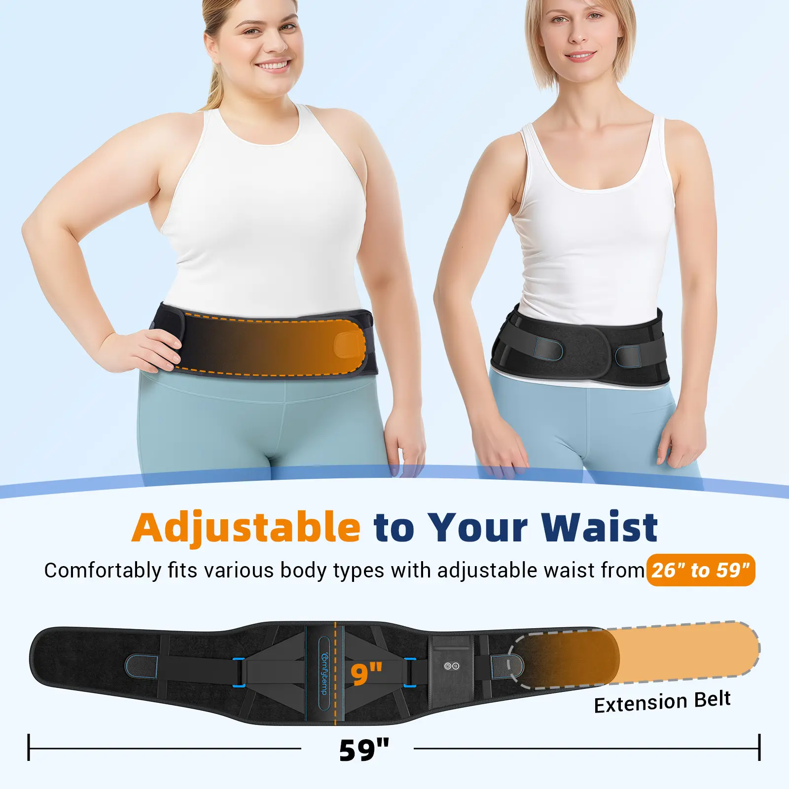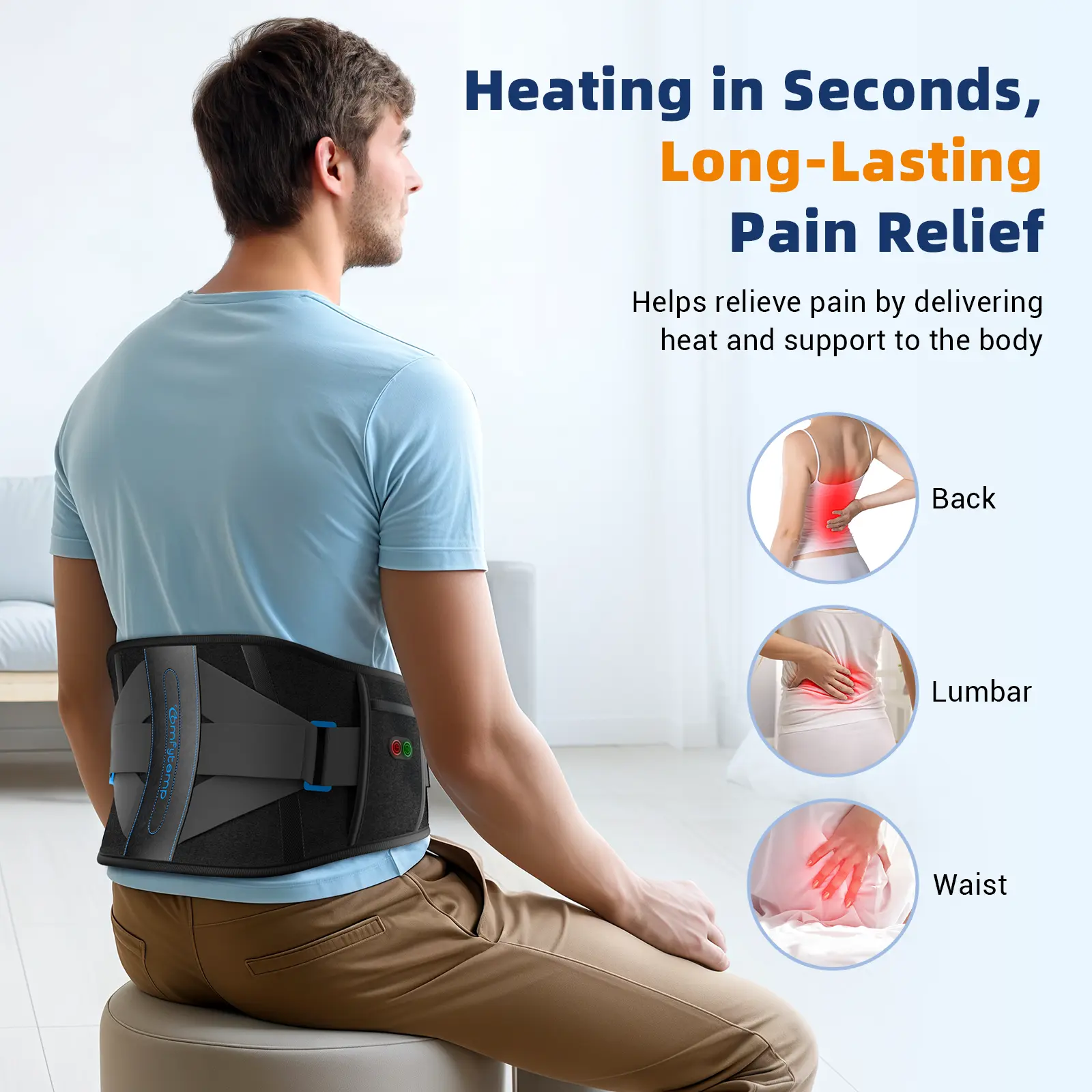 ·Three adjustable temperature levels and three timers (15/30/45 minutes). The 8.7" x 3.3" area effectively relieves lower back pain. Use as a heated waist support or a waist support belt.