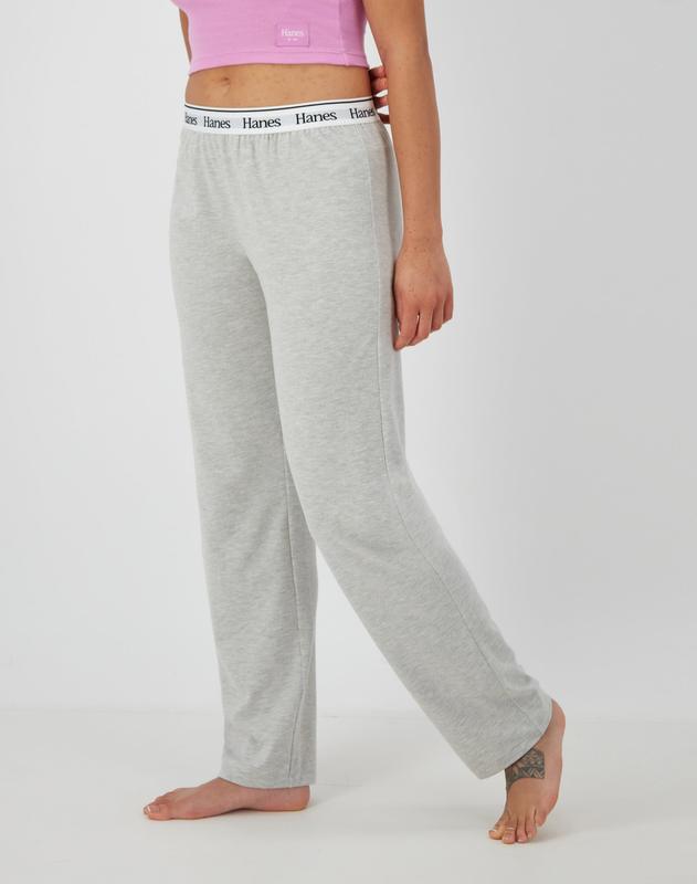 BASICS THAT ARE FAR FROM BASIC These women's lounge pants offer wardrobe versatility, thanks to their laid-back style mixed with incredible comfort. Crafted with soft cotton blend jersey fabric, this comfy design allows you to move with ease. Hanes branding highlights the elastic waistband in a nod to our iconic heritage. A straight-leg silhouette, these women's lounge pants deliver a flattering fit. The best part? This must-have style is brushed on the inside - so it feels as great as it looks. Pair it with our matching boxy tee, shelf bra cami, and more for an easy go-to look. From lounging to sleeping (or even running an errand or two), these are lounge pants you will want to wear on repeat. Hanes Comfywear: Loungewear never looked and felt so good.