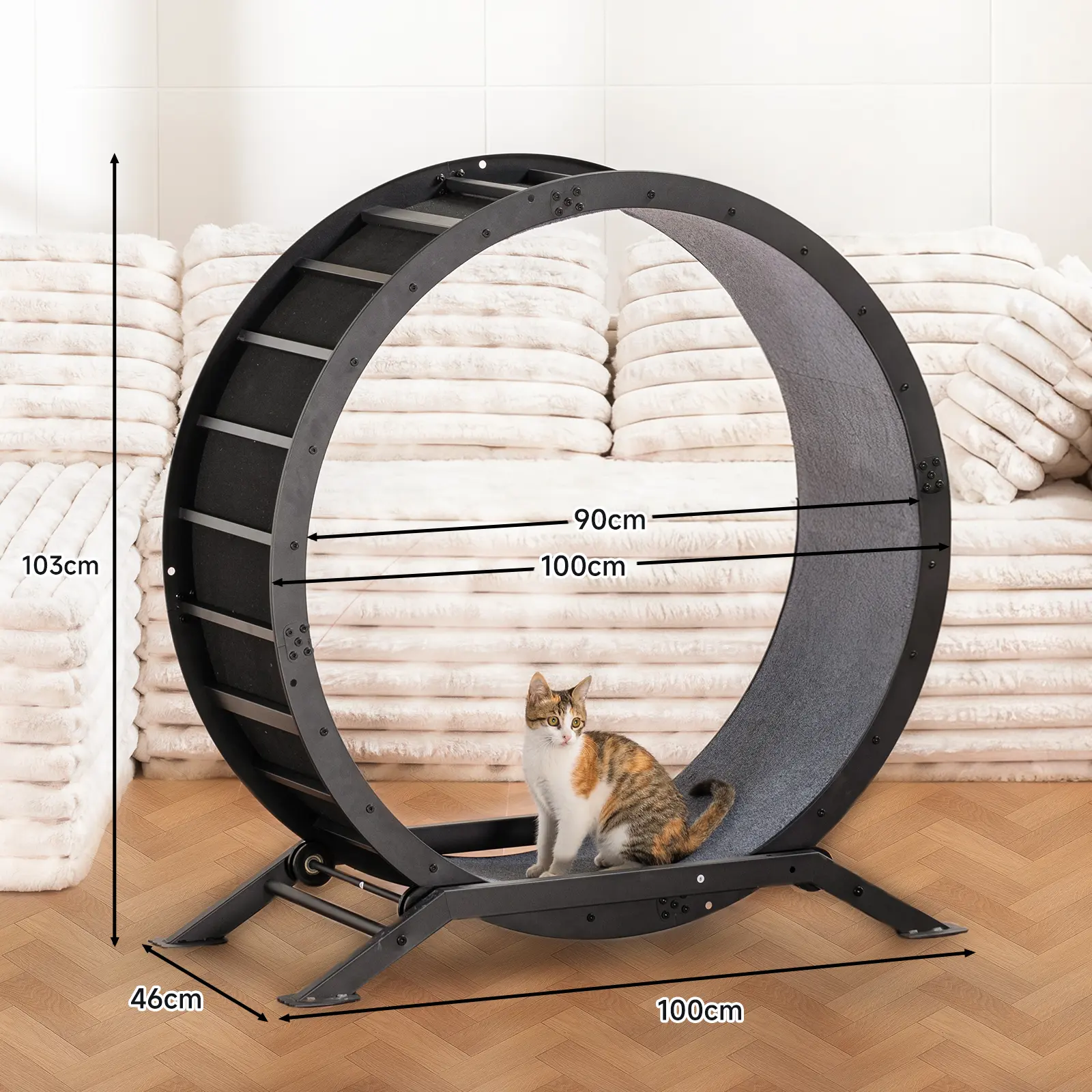 ·Heavy-Duty Metal Frame – Secure, Durable & Scratch-Resistant Designed for a cat's natural running needs, the cat wheel helps maintain healthy weight, cardio function, and muscle strength while reducing stress and destructive behavior. Built with strong, rust-resistant metal, it outlasts plastic or wooden wheels that may crack or wear over time. Resistant to oxidation, warping, and claw damage, it offers a safe and engaging indoor exercise experience for your cat—and peace of mind for you.