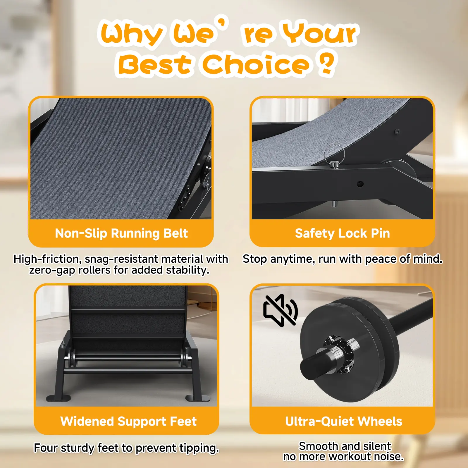 ·Exclusive Base Architecture for Unshakable Stability The foundation is critical for safety, which is why we engineered a unique, wide-stance trapezoid base with four fully ground-contacting feet. This design of our cat wheels for indoor cats guarantees exceptional stability during the most vigorous running, offering a solid and reliable foundation for your pet. This unwavering stability provides total peace of mind, enabling your cat to exercise freely and safely.