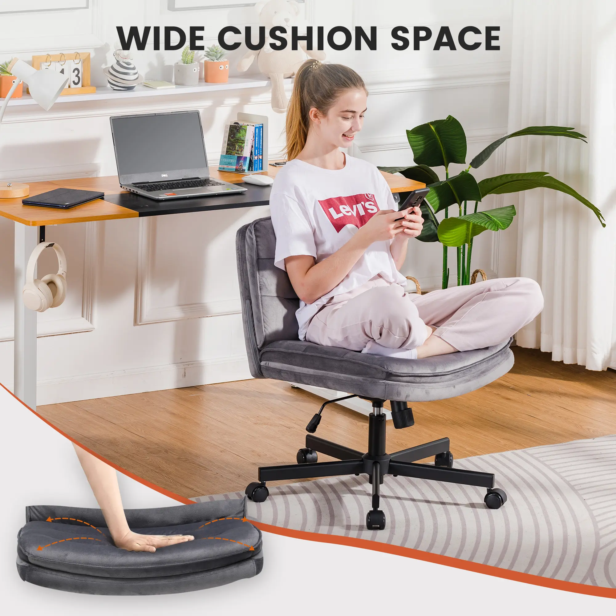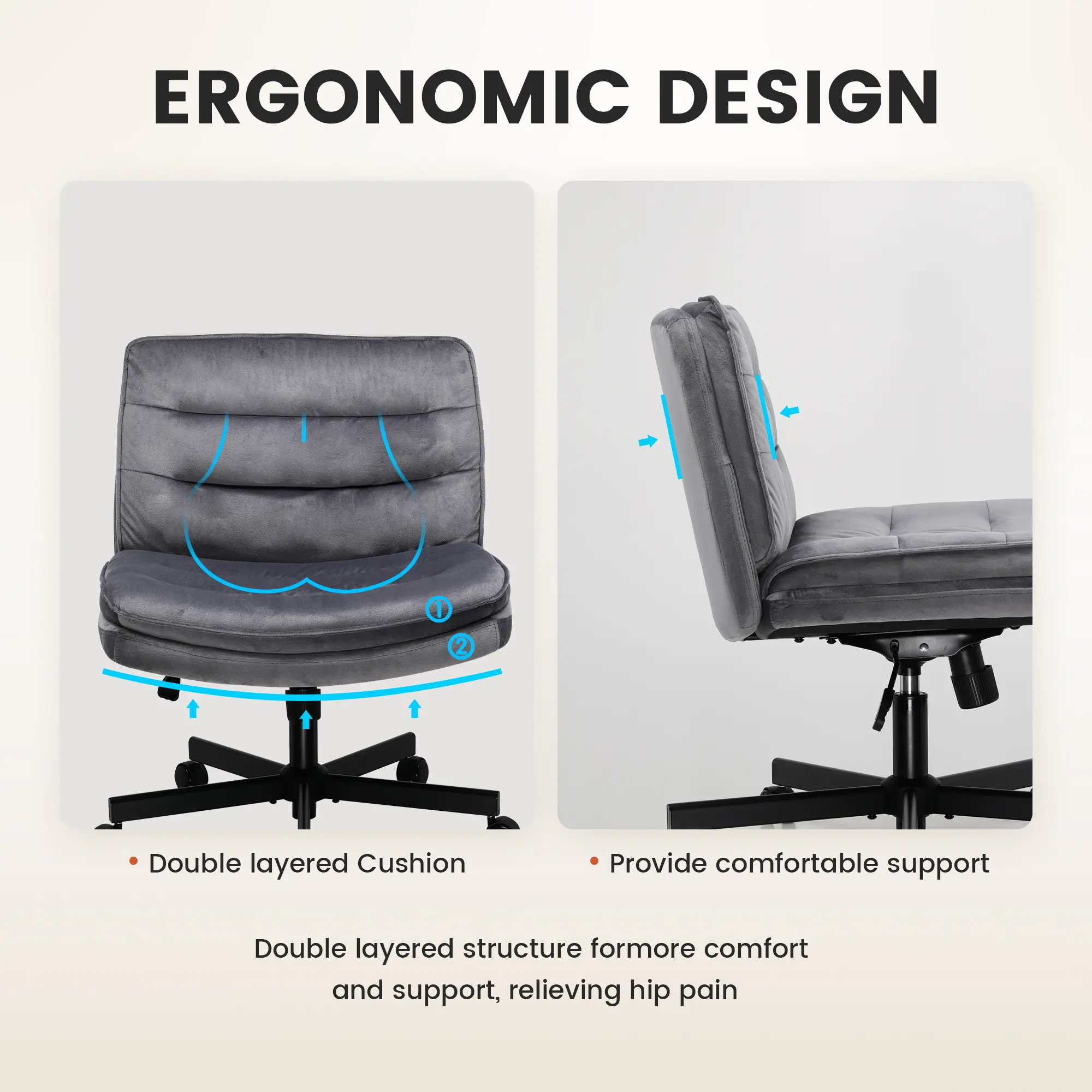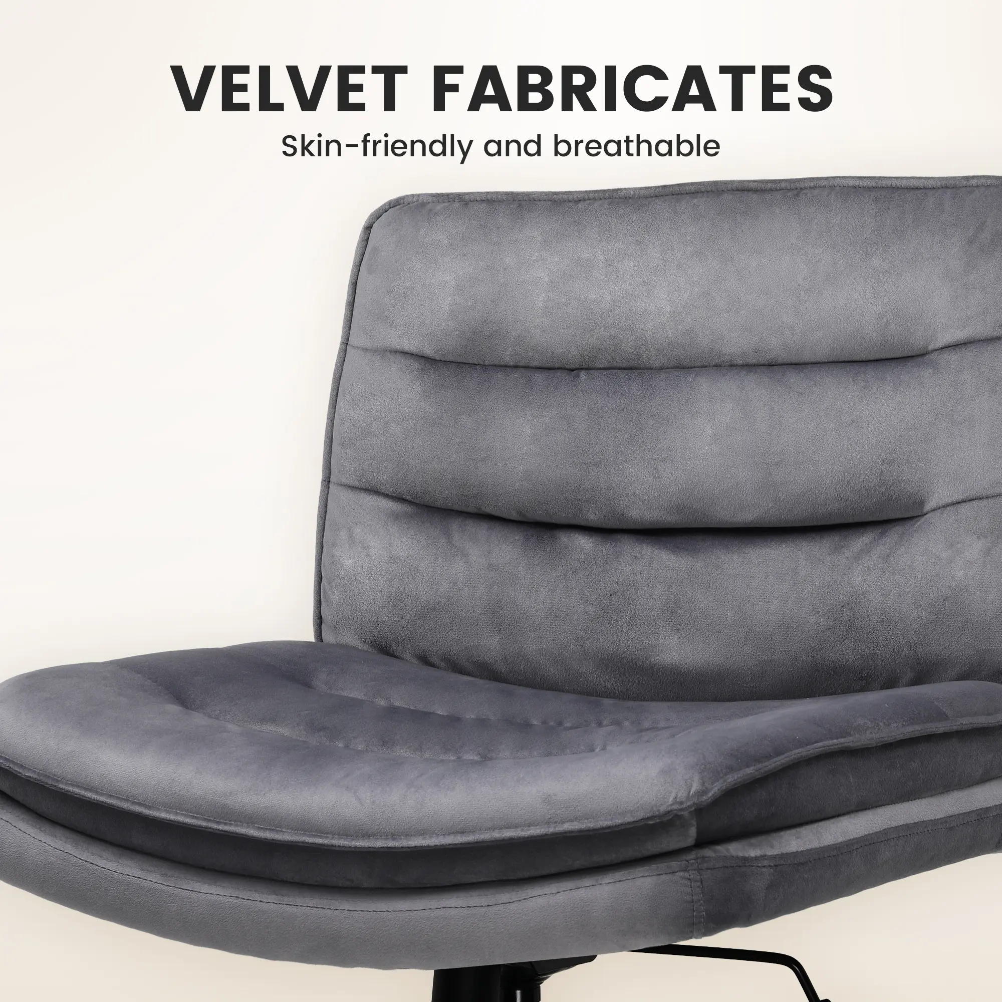 Just got the chair. So far I love it! Wide, soft and comfortable but also great for posture. I got the grey velvet. It looks better in person in my opinion.