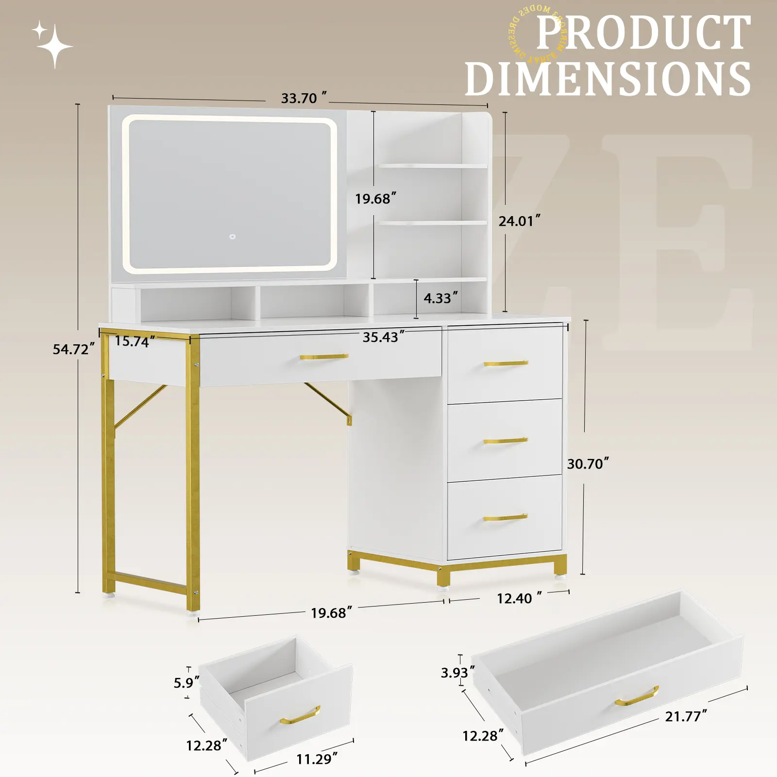 ·【Stylish and Elegant Design】This elegant vanity features a gold metal frame and wooden tabletop/drawers, blending modern and classic charm. It suits any room decor and exudes sophistication no matter where it is placed in the room. So this lighted vanity table will be an ideal gift for yourself or your loved people on birthdays, Valentine's Day, Mother's Day, Christmas or other anniversaries