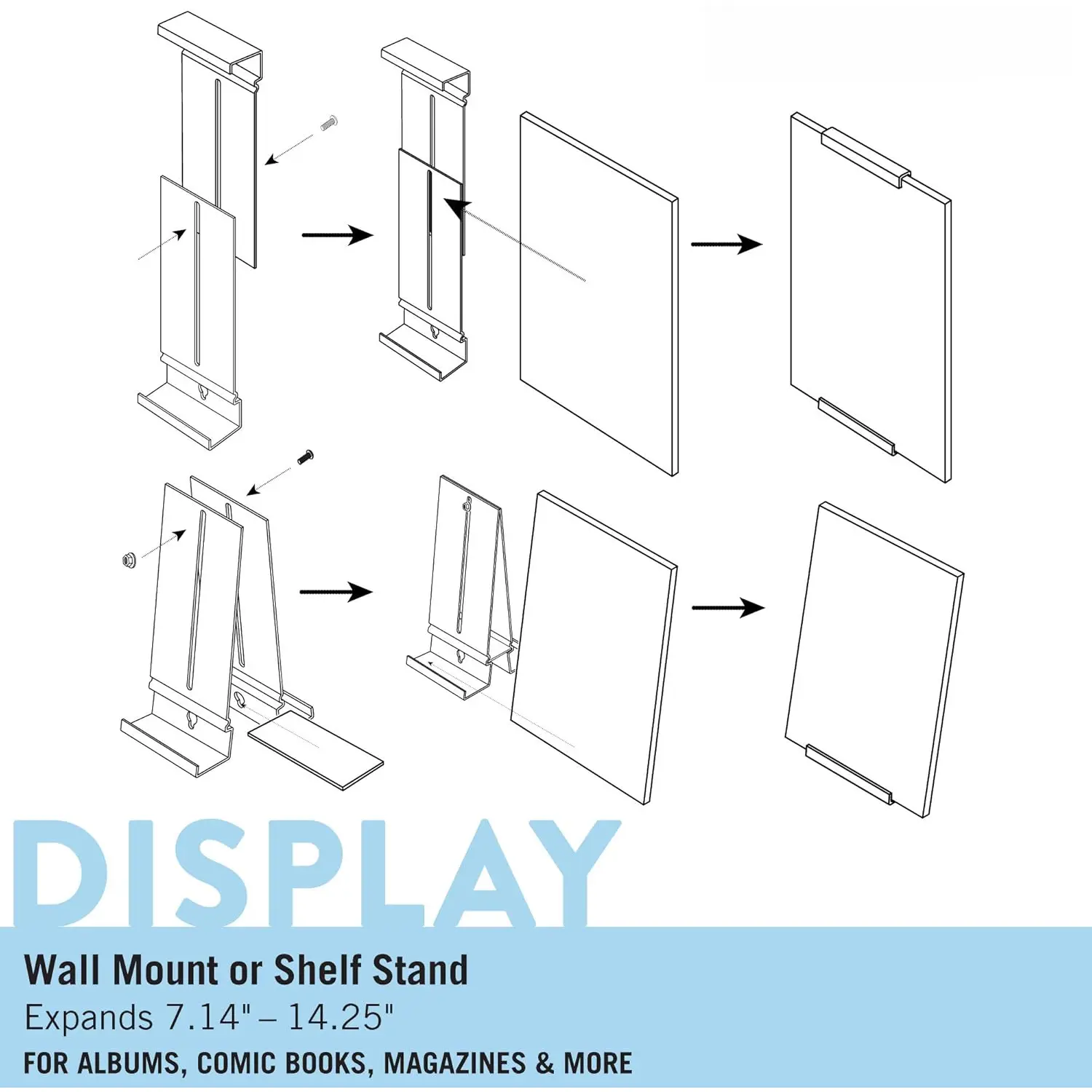 Adjustable from 8.75” to 14.25” to fit all vinyl album sizes and holds any collectible up to 1” in thickness so you can display your entire collection