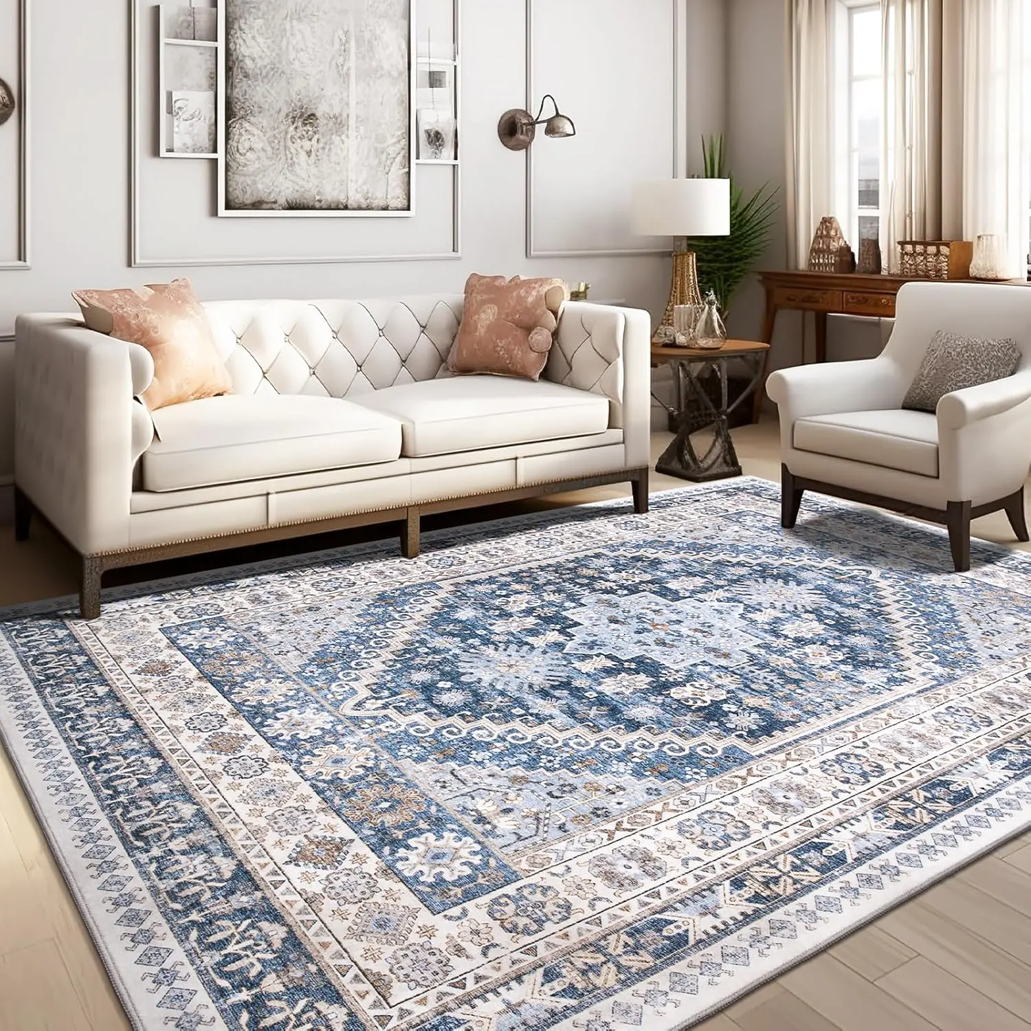 Tips:When the area rugs arrive there will be some creases at the beginning, please don't worry, gently smooth them out,flatten them on the floor and walk around, the creases will disappear in a few days.