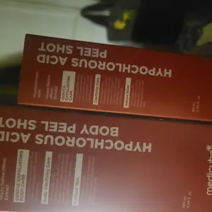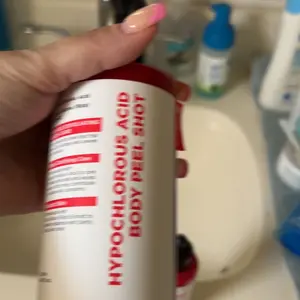 4. For the body, use the Hypochlorous Acid Body Peel Shot to dry, rough or textured areas before shower and rinse off.