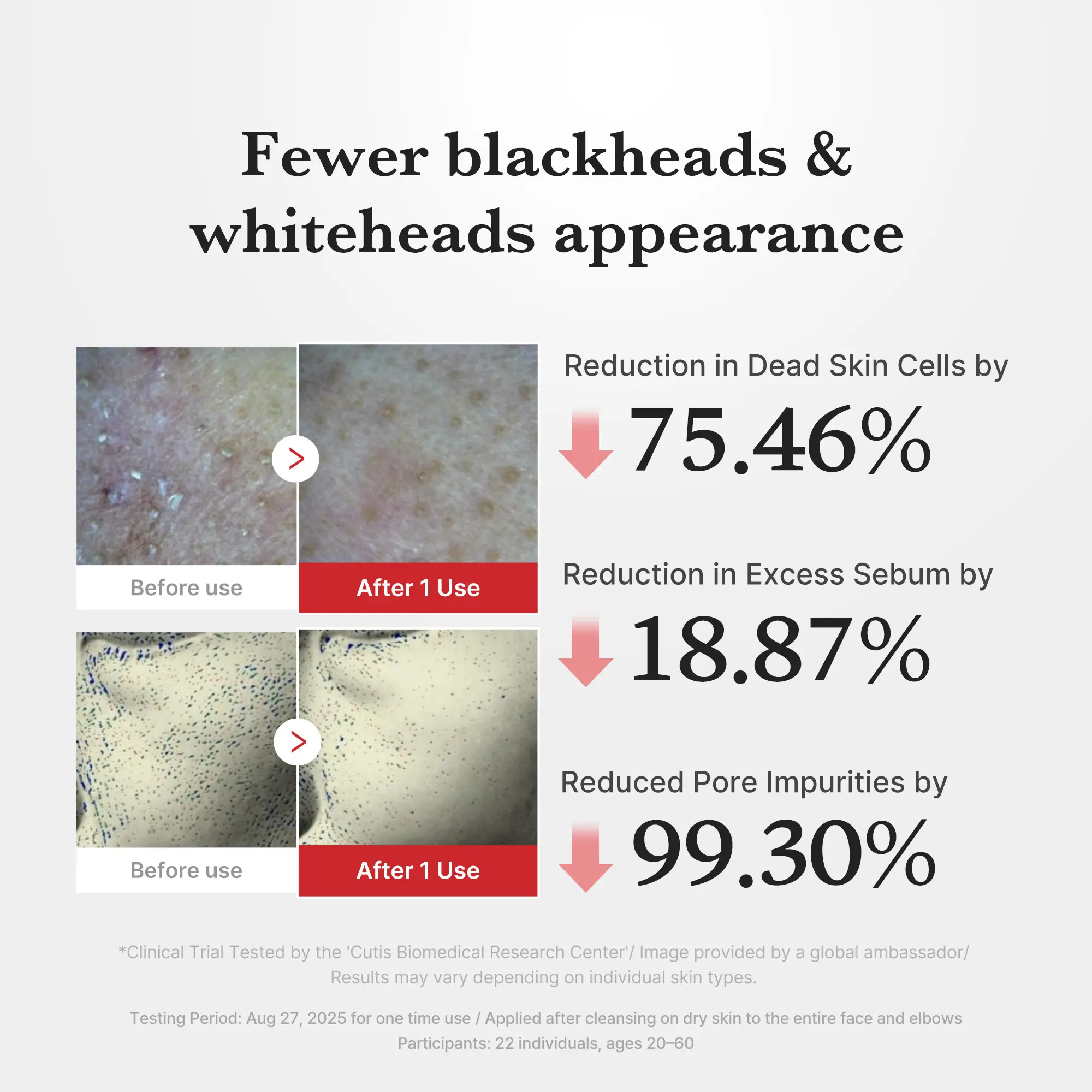 ·Fewer blackheads & whiteheads appearance by 12.08%