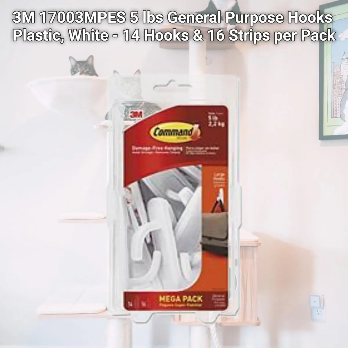 3M 5 lbs General Purpose Hooks Plastic, White - 14 Hooks & 16 Strips per Pack