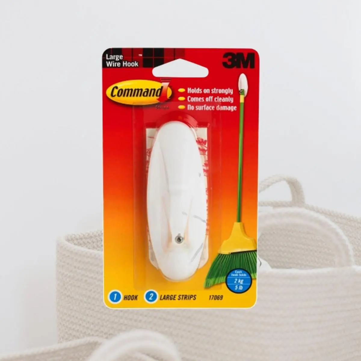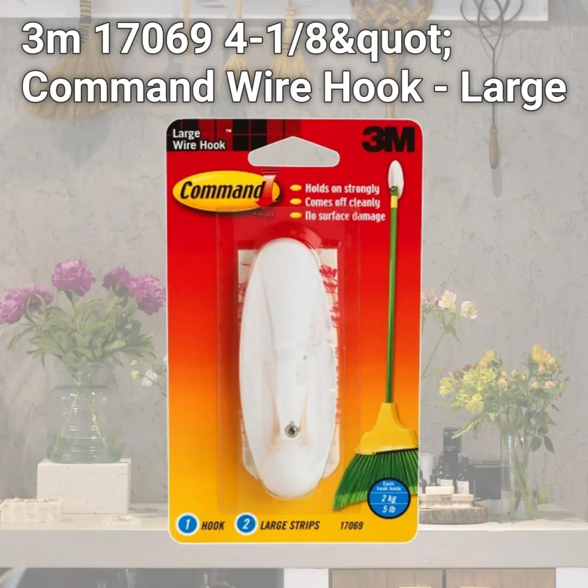 Wire hooks Holds on strongly Comes off cleanly No nail holes Large design Each hook holds Includes2 adhesive strips Carded Length: 2.14 Width: 6.8 Height: 3.9